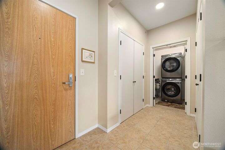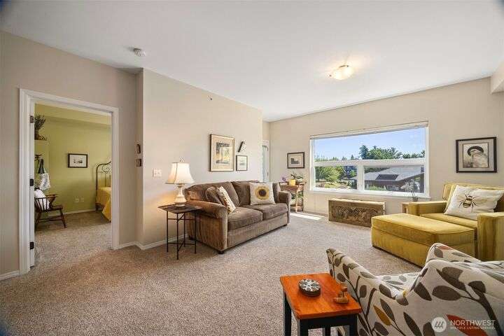 CENTRAL COURTYARD VIEWS from this beautifully maintained & lightly lived in unit with den that offers flexibility for guest room &/or work space. Enjoy newer appliances, bathroom w/ 2 sinks & updated fixtures & counter tops, walk in closet, in-unit laundry & ample storage. This bright, open layout features tastefully painted walls, doors & trim that opens to a private balcony—accessible from both the living room & bedroom. Darby Estates is a peaceful, pet-friendly community, an easy walk to Whatcom Community College, the Food Coop and local parks & trails. On major bus routes, it is close to shopping, essential services, and freeway access. Clubhouse offers a fitness center, kitchen, & ample space for your larger gatherings.