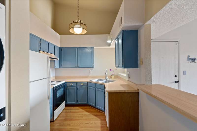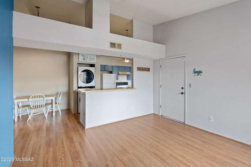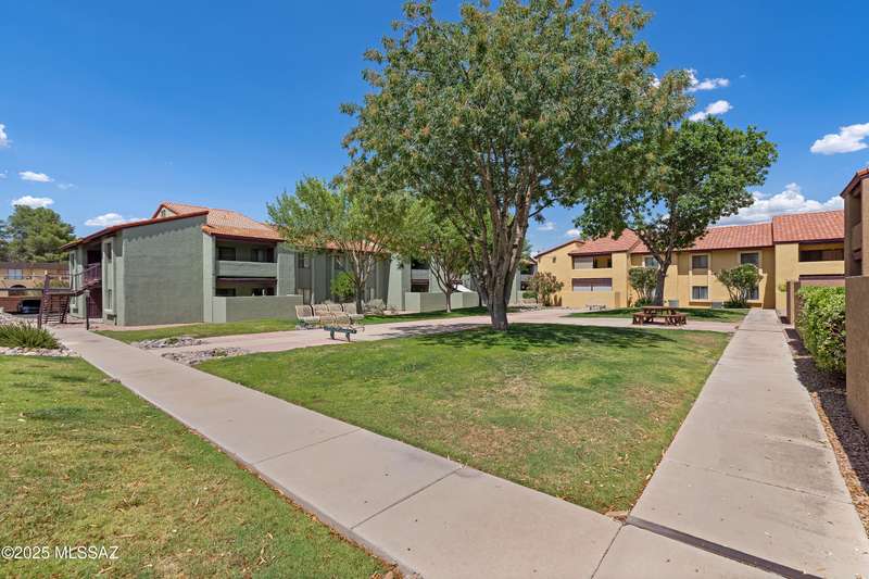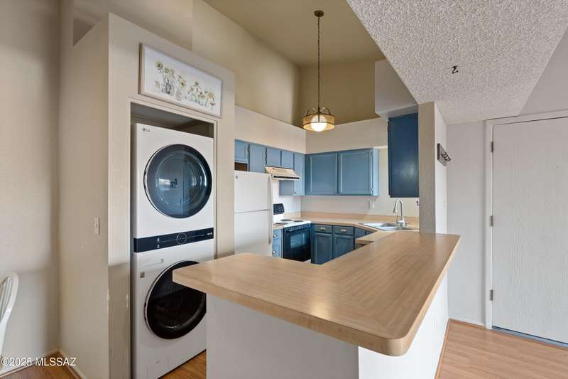Welcome to this charming second-floor 2-bedroom, 2-bath condo, ideally located just minutes from shopping, dining, and the beautiful Udall Park. This light-filled home features soaring high ceilings and an open layout that creates a spacious, airy feel. The well-appointed kitchen flows seamlessly into the living and dining areas, perfect for both everyday living and entertaining.Enjoy the convenience of an in-unit washer and dryer, as well as close proximity to the community pool--perfect for relaxing on warm Arizona days. Both bedrooms offer generous closet space and comfortable living. Situated in a quiet, well-maintained community, this condo combines comfort and convenience in a prime Tucson location.