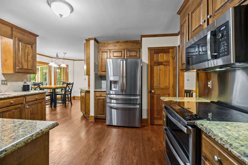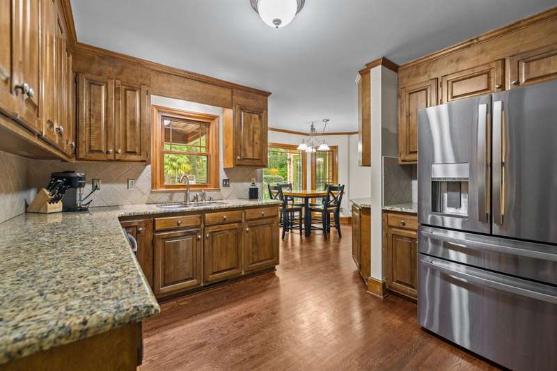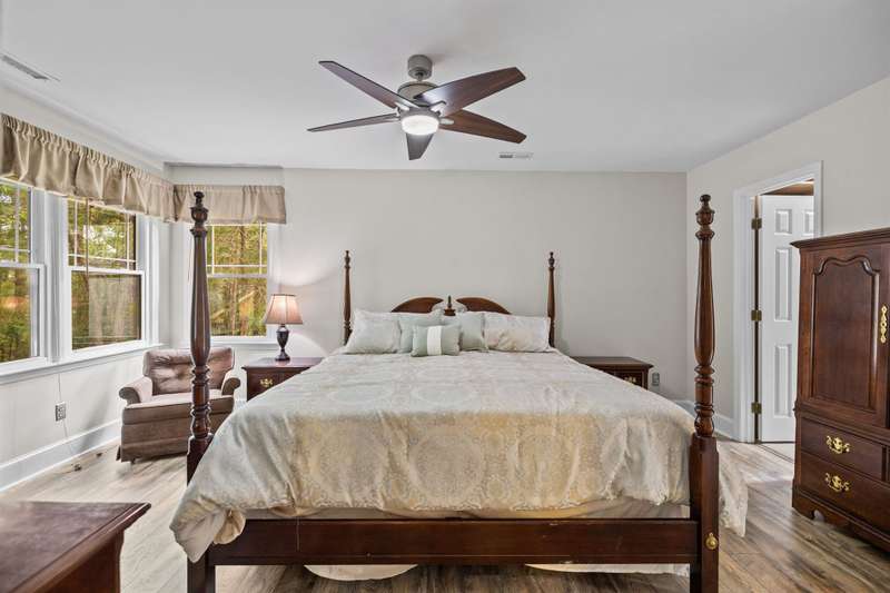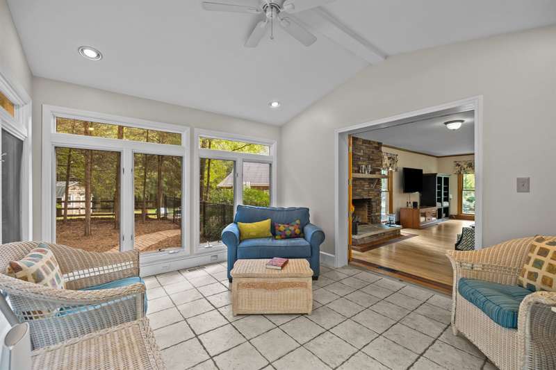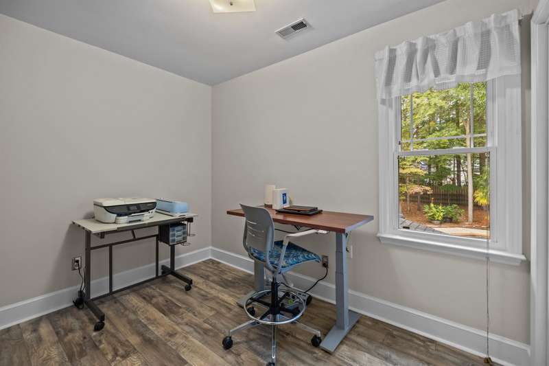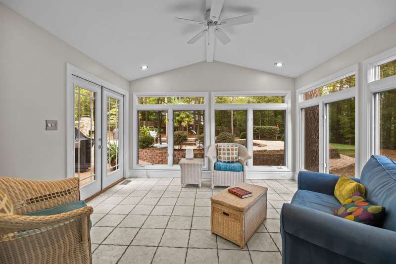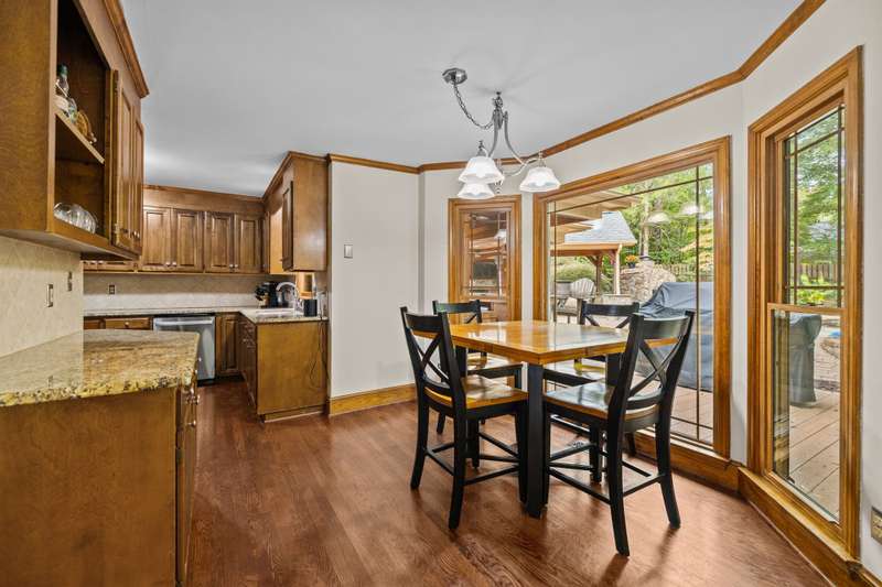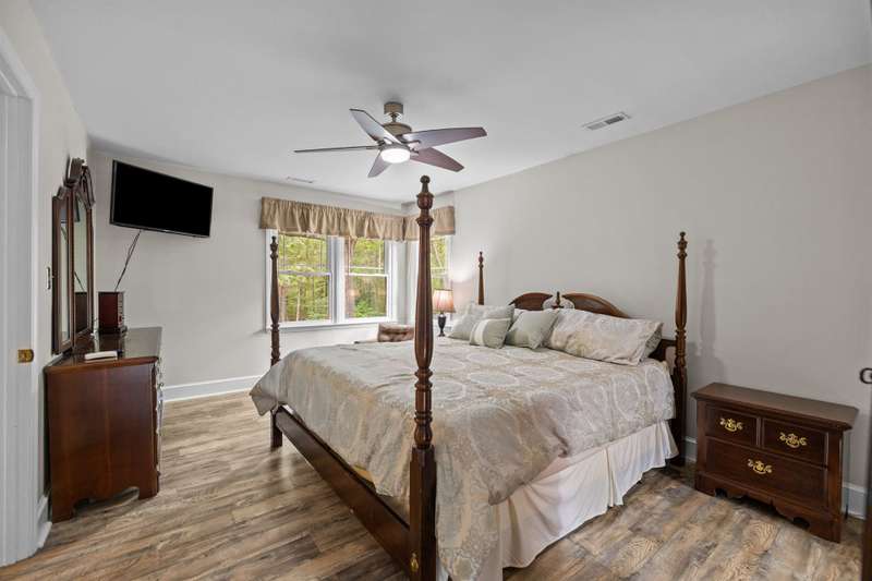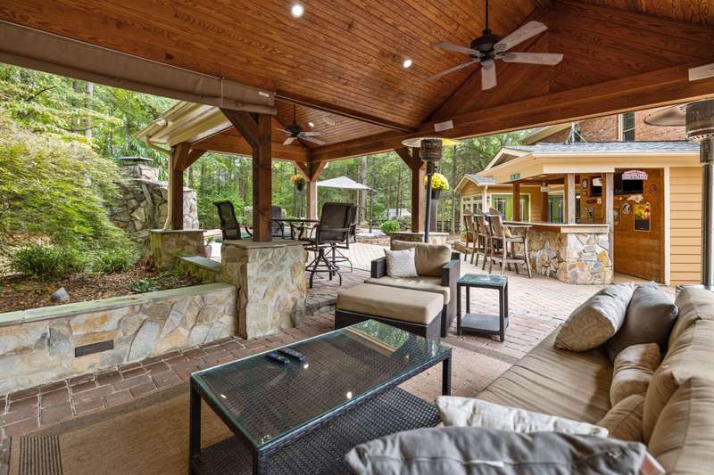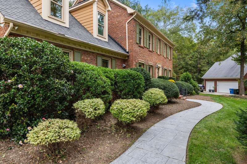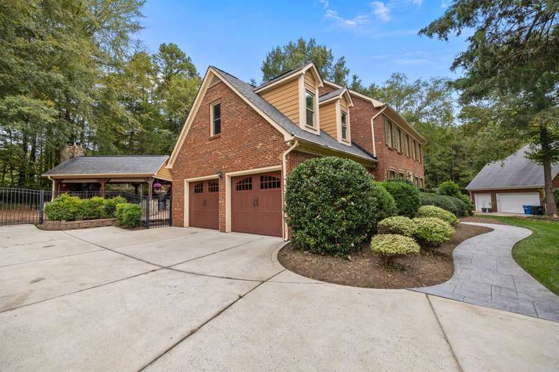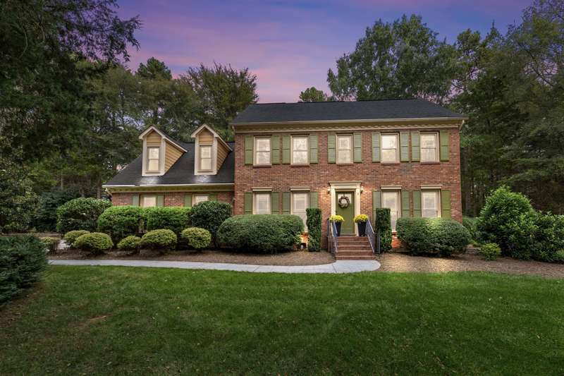 Beautiful full-brick custom home in popular Ashe Plantation! Who needs a vacation when you can enjoy resort-style living year-round? Nestled on over a half-acre cul-de-sac wooded lot, this 4-bedroom, 3.5-bath home offers privacy, space, and exceptional outdoor living. Relax by your private heated Pebbletec in-ground pool and spa, practice your short game on the built-in putting green, or unwind by one of two custom stone fireplaces in the outdoor living and dining areas. Watch the game from the outdoor bar and entertain with ease!Inside, site-finished hardwood floors flow throughout the main living areas, complemented by fresh paint and elegant finishes. The spacious formal dining room is perfect for gatherings, while the large living room with a gas log fireplace offers comfort and versatility. A bright 4 seasons sunroom overlooks the pool, blending indoor and outdoor living beautifully.The kitchen features rich stained cabinetry, granite countertops, and stainless steel appliances. The primary suite includes an updated bath and a walk-in closet. A generous bonus room is ideal for movie nights or play, while the third level provides a private retreat for guests or teens with its own bedroom, full bath, and bonus/flex space.Enjoy the fenced backyard, oversized driveway, storage shed and beautifully landscaped grounds designed for both entertaining and everyday enjoyment. Also! new windows 2023, new 2nd and 3rd level LVP flooring 2023, Exterior paint 2023, Interior paint 2025,
