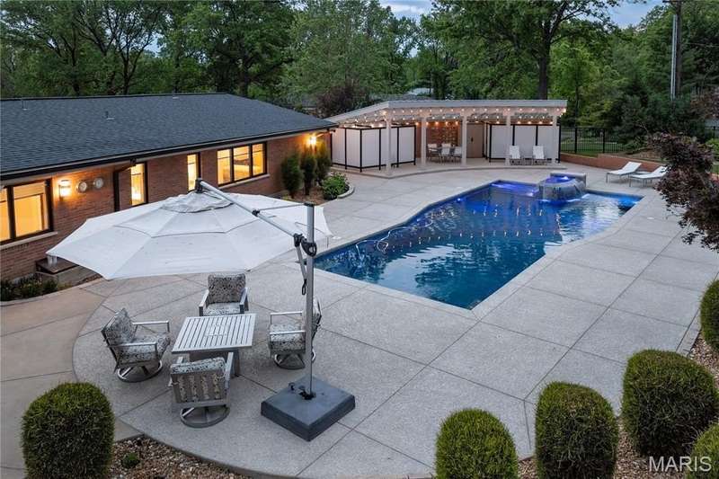 Compelling new price. A strong value proposition awaits in this Mid-Century/Modern reimagined and rehabbed, inside and out creating a 5 year old home, pool, and landscape. On the grounds of prestigious Westwood Country Club. 5BRs, 6BAs, and nearly 7,300SF of finished living area. The home pays homage to original architect Ralph Hohlt, while presenting a thoroughly modern masterpiece, with highest levels of finish and technology and a completely turn-key experience. No amenity is left undone. Hallmarks include vault ceilings, marble and stone flooring, solid mahogany doors, low voltage Smart House features including audio, video, lighting, heating, cooling, and security all controlled by touch screen or SmartPhone. Chefs kitchen showcases Zanzibar ebony and acrylic white high gloss cabinetry, SubZero, Wolf, Thermador, Bosch, and Fisher & Paykel appliances. Primary suite expansion created a luxe bath with room-size organized closet. A 2nd Primary Suite on Main Level is at the far end of Main Level, creating ultimate privacy and separate quarters. A 5th suite on Main Level is ideal for in-laws/au-pair, with a private exterior entrance. Lower level includes media, recreation, exercise, and game rooms, full kitchen and bath, amd abundant storage. The pool is refinished; all systems rebuilt. Pool house with full bath and shower offer additional storage. Entirety of grounds, landscaping, retaining walls, patios and circle drive have been replaced. A pergola completes the property.