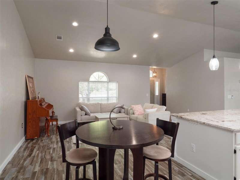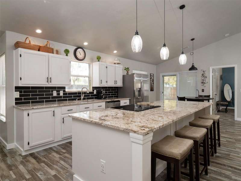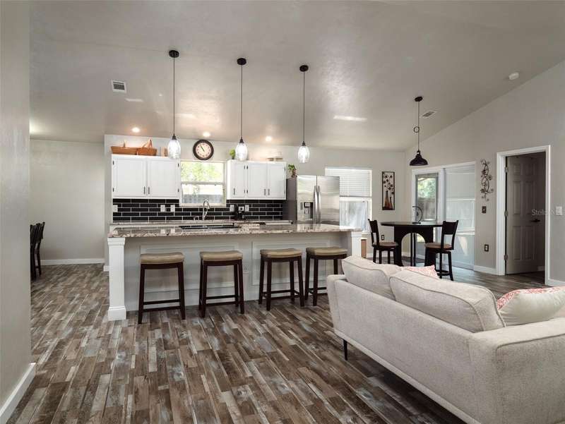 8045 SW 63rd Lane! Welcome to your dream home in the serene Hickory Forest community! This elegant 4-bedroom, 2-bathroom residence offers a harmonious blend of luxury and comfort, making it the perfect retreat for families or anyone seeking a tranquil living space. Step into sophistication with beautiful luxury vinyl plank flooring that flows seamlessly throughout the main living areas and the primary bedroom, combining durability with the timeless appeal of hardwood. The home opens up into a spacious great room, adorned with vaulted ceilings that enhance its airy and inviting ambiance. This space is perfect for entertaining guests or enjoying quiet evenings with family. At the heart of the home is a modern kitchen, equipped with granite countertops and a long island with seating for four. It’s a culinary enthusiast's dream, offering both functionality and style. Whether you're hosting a formal dinner or enjoying a casual meal, the separate dining and breakfast areas provide versatile dining options to suit any occasion. The living room features vaulted ceilings and a charming fireplace, creating a cozy haven for relaxation and social gatherings. Privacy and space come together in the expansive fenced backyard, where anyone can just play freely in a secure environment. Extend your living space outdoors with a covered and screened lanai, perfect for enjoying the beautiful surroundings without the worry of pests or inclement weather. This home in the Hickory Forest community combines modern amenities with comfort, making it an ideal choice for those seeking a peaceful and stylish lifestyle. Don't miss the opportunity to make this beautiful house your new home!