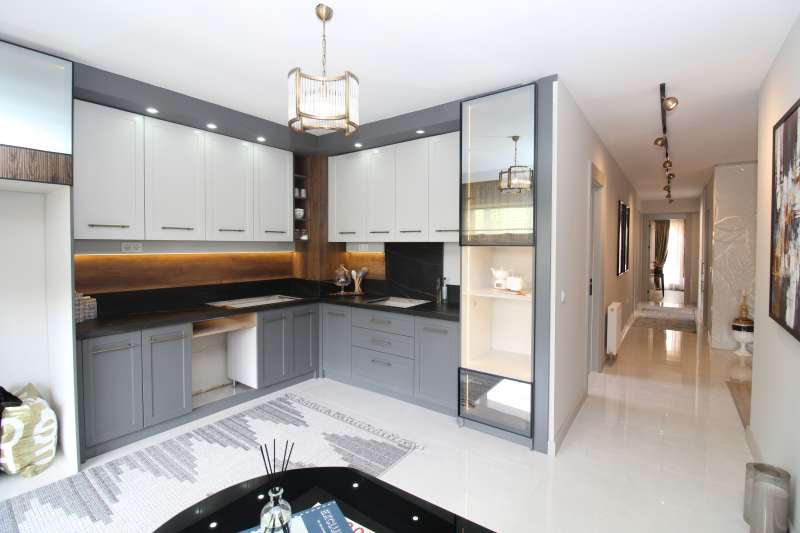 The properties for sale in Ankara come with 3 and 4-bedroom options. They are distributed into a living room, open-plan kitchen, bathroom, en-suite bathroom, dressing room, and balcony. They are equipped with a central heating system, shower cabins, built-in kitchen sets, laminated parquets, and wet floor coverings.