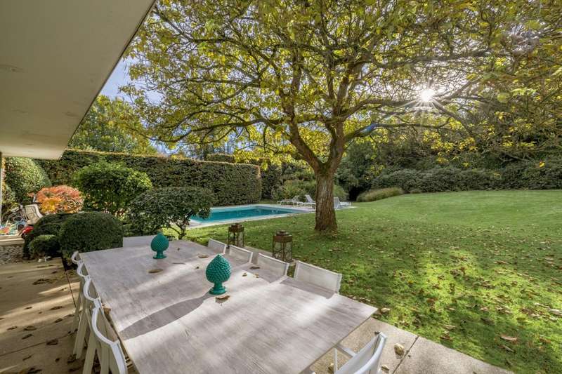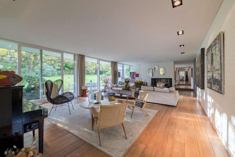 In one of the most sought-after neighbourhoods of Uccle, close to the shops and schools of Fort Jaco, this rare contemporary property, built in 1968 and extensively renovated in 2000 in a minimalist, Zen style, offers an exceptional living environment. Built on a landscaped plot of ± 38 ares 87, facing south-west, it charms with its calm, its light and its remarkably designed garden, complete with a mosaic swimming pool. The villa has a built area of ± 600 m², divided between beautiful reception rooms, a fully equipped Boffi kitchen, an office, 5 bedrooms, 3 bathrooms and 1 shower room. A garage for 3 cars and 3 outdoor parking spaces complete the property. EPC: G A rare property combining space, serenity and refinement in one of the most sought-after areas of Uccle.