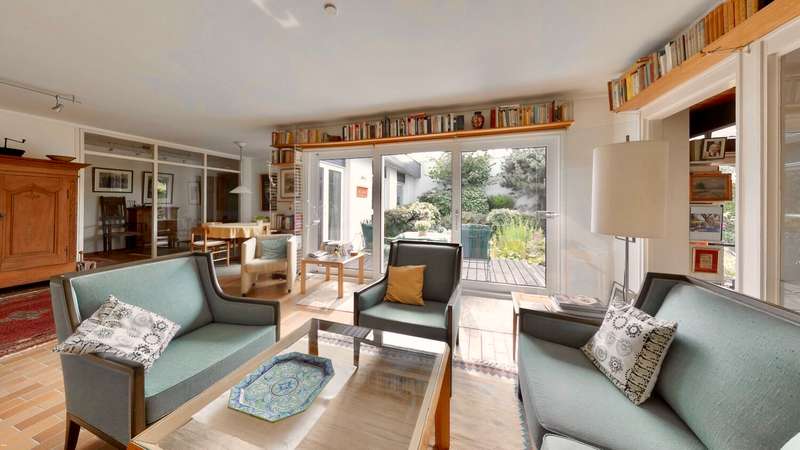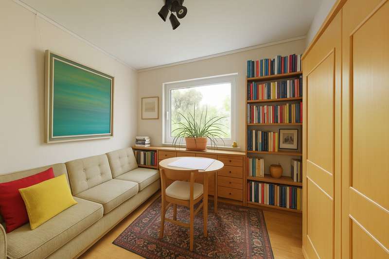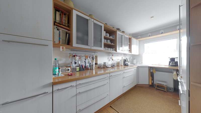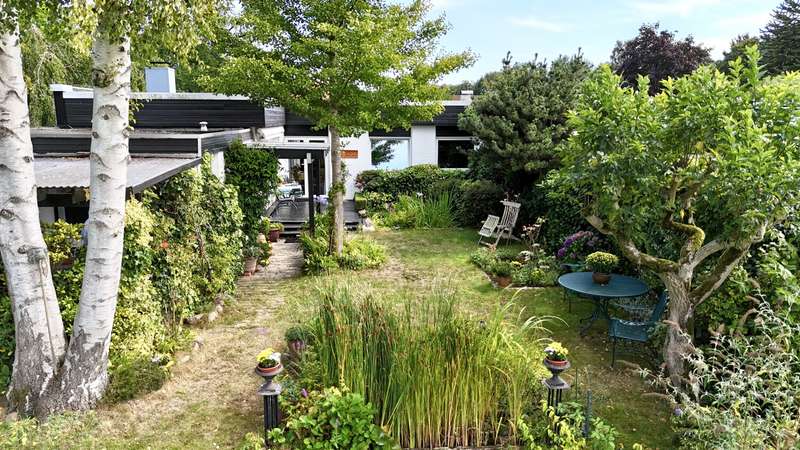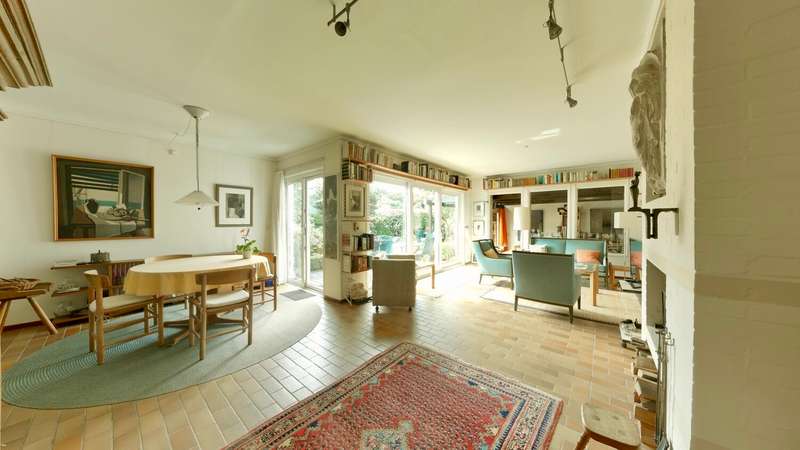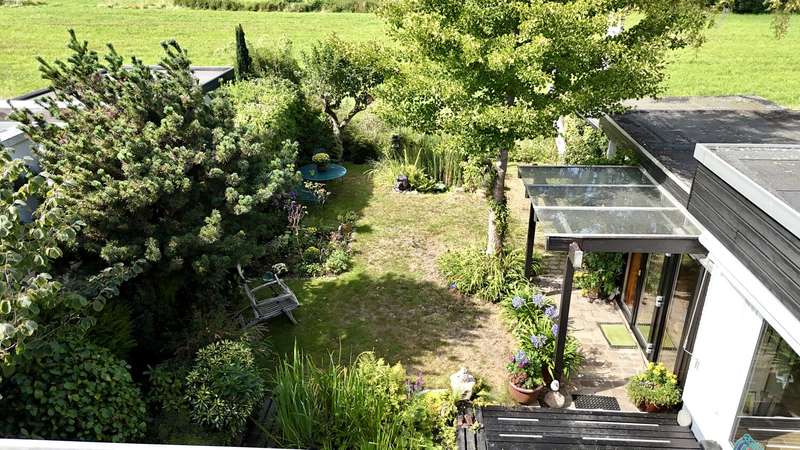 This detached single-family home from 1972 is situated on a southwest-facing plot of around 447 m² and offers an attractive opportunity for couples and families with approx. 122 m² of living space. Situated in the immediate vicinity of a nature reserve, the property guarantees a high degree of privacy and allows you to live close to nature - the tranquillity and the unobstructable, green surroundings ensure that relaxation in your own garden is guaranteed. The house welcomes you via a central hallway from which all rooms on the first floor are accessible. The heart of the light-flooded living and dining area is the fireplace, which creates a pleasant atmosphere, especially in the winter months. From here you have direct access to the spacious terrace, which is shaded by an awning on warm days. The view of the garden and the small garden pond provide a special accent and offer a variety of options for individual garden design. The adjoining, timeless fitted kitchen is included in the purchase price and offers plenty of space for cooking together. Conveniently, there is a separate utility room in the entrance area, which offers additional storage space for household appliances or supplies. A total of four rooms are available, which can be used flexibly as bedrooms, children's rooms, study rooms or guest rooms. The daylight bathroom is equipped with a bathtub and separate shower. The fittings in the house correspond to the level of the year of construction with night storage heating and double-glazed windows. Partial underfloor heating - especially in the tiled areas - provides a pleasant warmth. This offer is rounded off by a single garage, which not only offers a secure parking space for your vehicle, but also provides space for bicycles or garden tools. The plot offers further parking in front of the house. The lovingly landscaped garden impresses with its size and pleasant proximity to valuable natural areas. The location on the edge of a nature reserve offers you direct access to a wide range of leisure activities in the countryside, such as long walks or bicycle tours. Shopping facilities, schools and kindergartens are nearby and can be reached within a short distance. The combination of a generous plot, extensive space, fireplace, terrace, fitted kitchen and garage make this house suitable for families who value a pleasant living environment as well as for couples looking for a quiet home in a natural setting. Arrange a viewing now - this detached house awaits you with a perfect combination of functionality, comfort and a good location.
