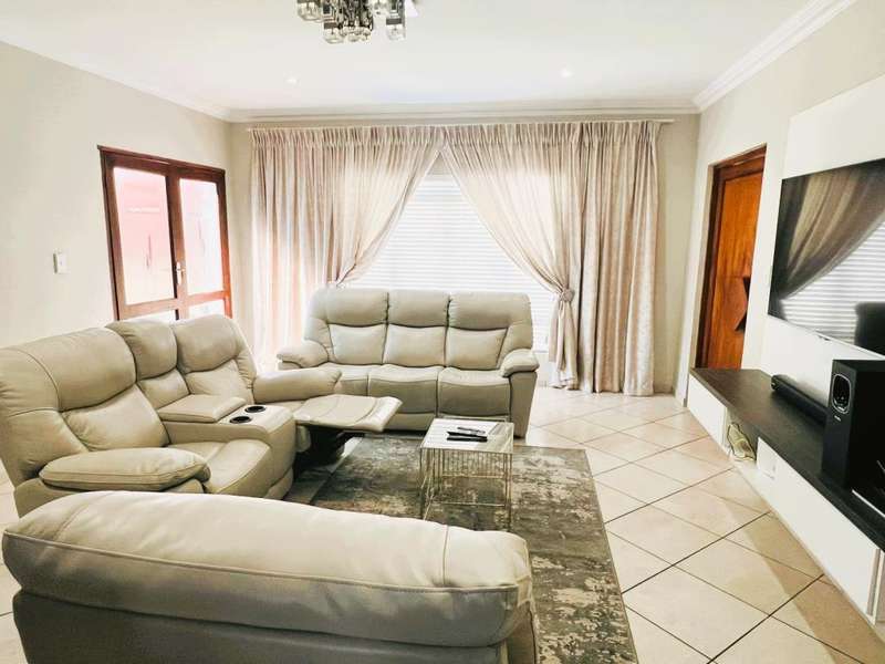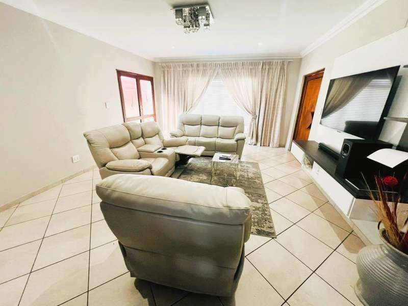 The PERFECT Family Home This excellently located Home offers a wonderfully safe lifestyle in peaceful surroundings. The beautifully modernized open plan kitchen flows to a bright breakfast area that lies alongside a spacious dining area and living area 3 beautiful bedrooms with large closet space (1 en-suite) and 1 stunning full bathroom and a Separate Toilet A Beautiful Garden to spend a memorable time Double garages and a few more parking space outside Lavender Estate is located close to main routes, schools, Hospitals and shopping mall Contact me now for your exclusive viewing We do assist with bond pre-Qualifications, please do enquire about it. .