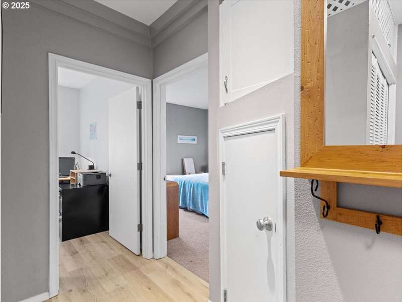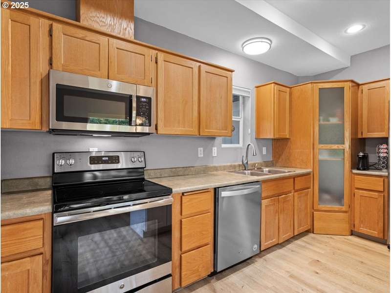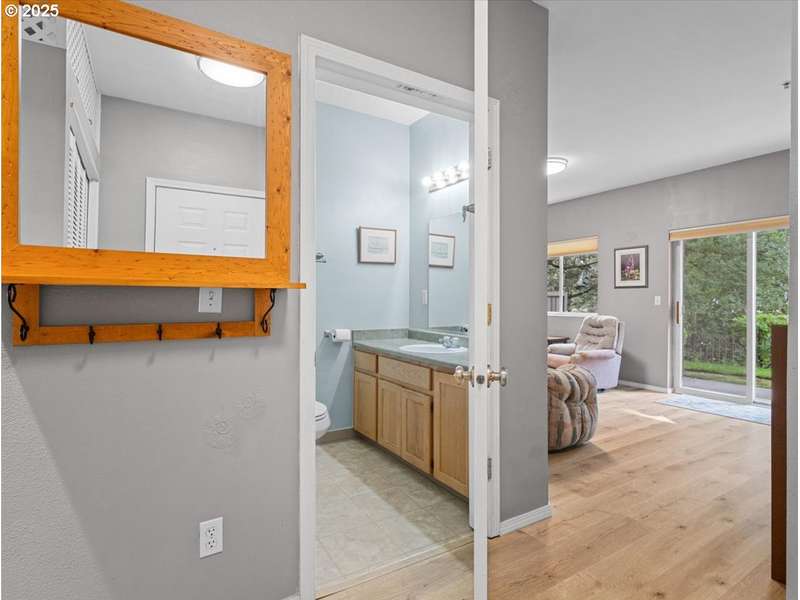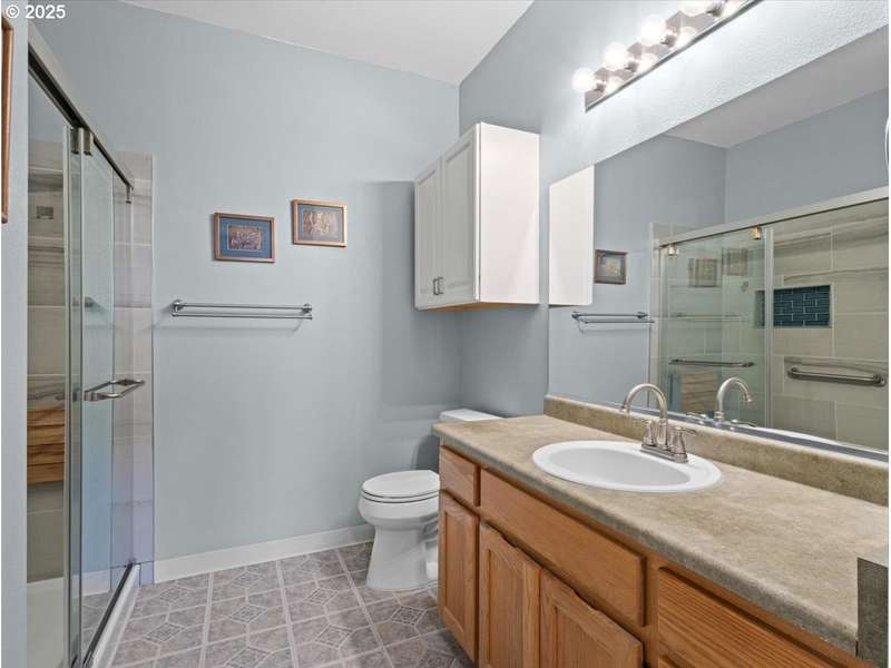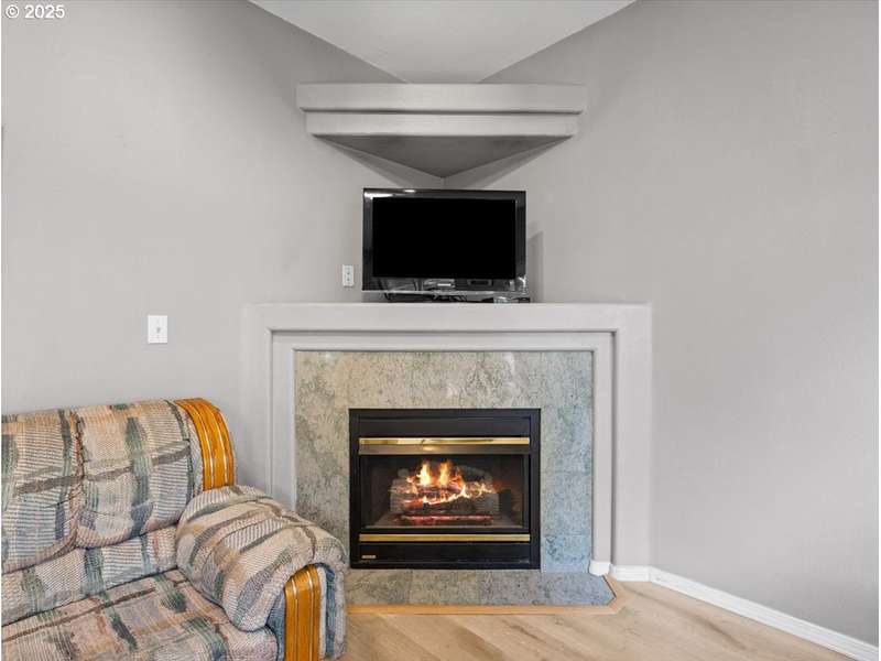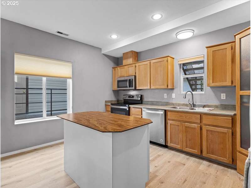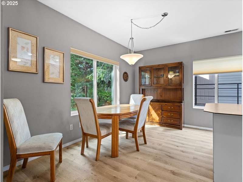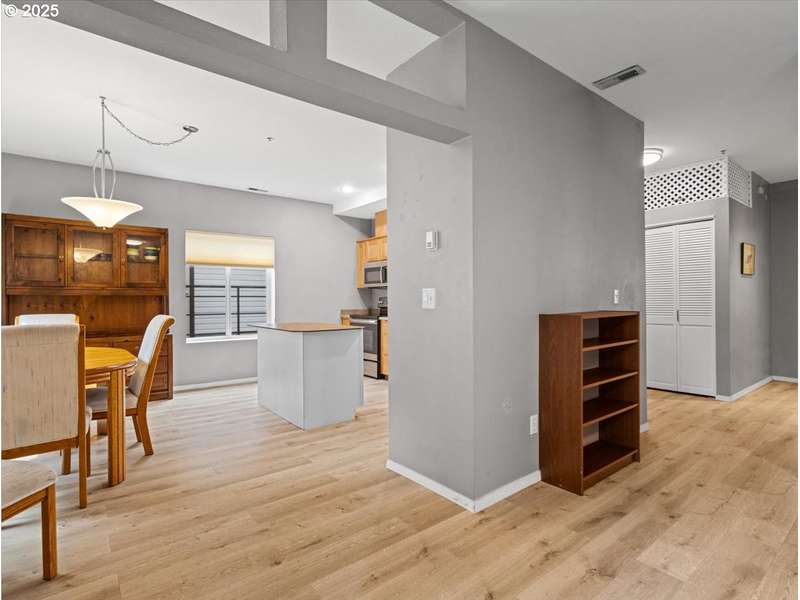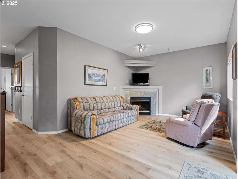 Gated Community (gates lock at night) with secure mailbox building, accessed with key fob. Amazon Hub lockers on site (locked package delivery facility; your packages aren't left on your porch!). Lovely generous sized 2 bd/2 ba one-level condo (end unit means additional windows, approx 200 sf larger than most, one of the largest single-level NO STEP condos). Really nice - even a kitchen island and pantry! This seller left no space unused - built-ins or shelving inside closets, former corner art niche is enclosed now for extra room, even the typical laundry closet has been transformed with stackable full-sized laundry plus a ton of storage! Seller has had a number of updates including a beautiful walk-in tile shower in the primary bedroom (there are also 2 closets in the primary). The following have been replaced recently: Garage Door Opener 2 months; Refrig 1+ yrs; Water heater 2-3 yrs; Washer/Dryer 2-3 yrs; Dishwasher 3-4 yrs; Range 5+ yrs. NO STEPS TO UNIT, NO STEPS INSIDE. Back patio view of peaceful green space - watch the hawks play and listen to the ducks chatter in the seasonal creek.