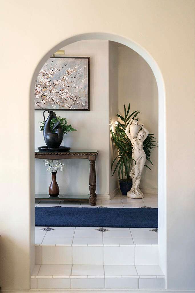 Elegant Interiors: Arched passages, crown molding, custom tile work, and hardwood floors create a luxurious yet welcoming atmosphere.