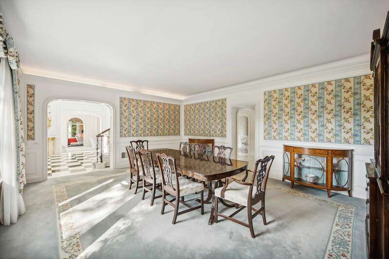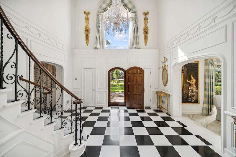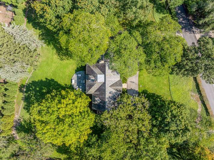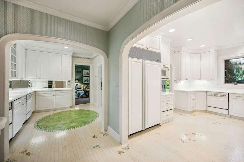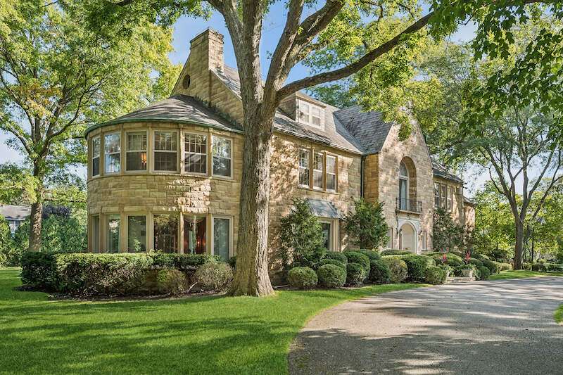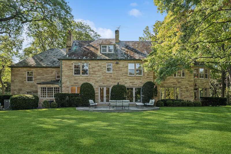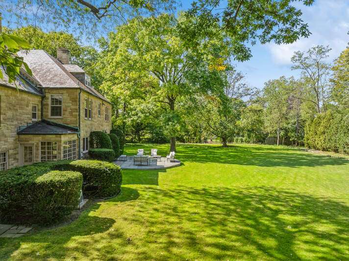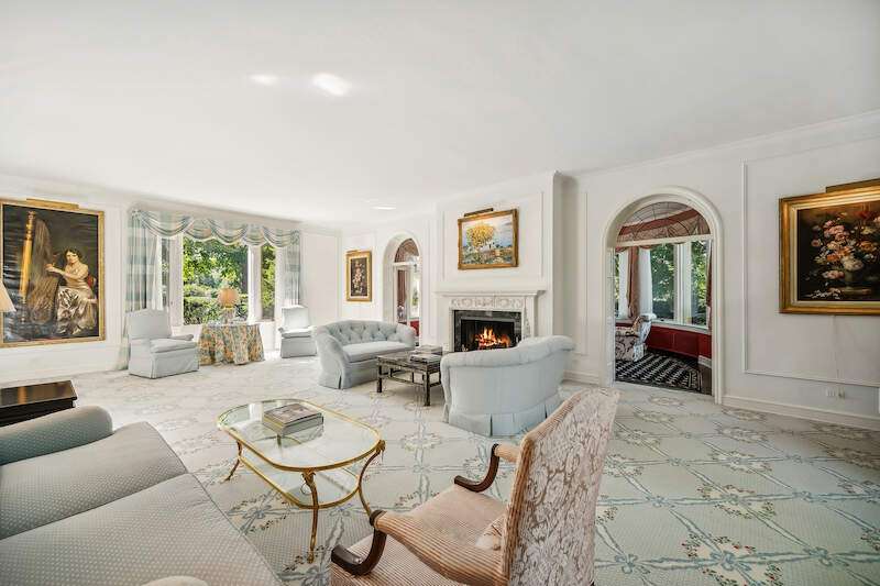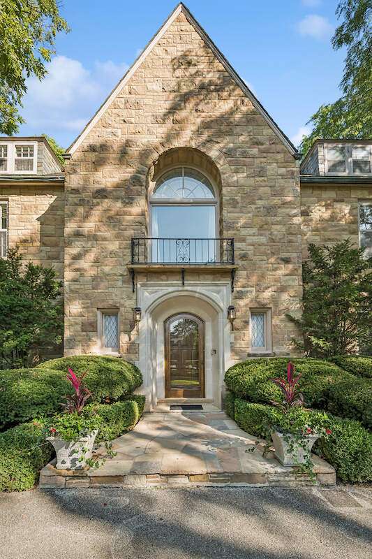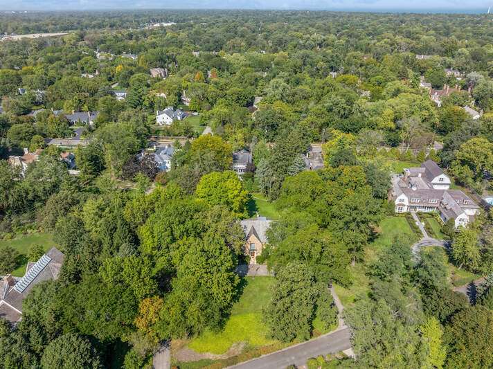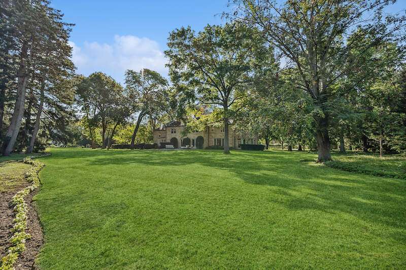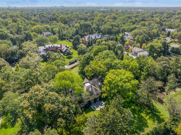 Nestled down a winding, private road on 1.9 meticulous park-like acres, this grand, almost 10,000 square foot residence exudes luxury and timeless elegance. The front entrance is set apart from the road by a sweeping circular drive bordered by private hedges and mature trees. Upon entering the stately, two-story foyer with a 25' ceiling, bridal staircase, black and white marble floor, formal powder room and two coat closets, you are greeted by the sophistication that defines this home. The main level features a spacious, step down living room with inlaid floors, a marble, gas and wood fireplace, and two picture windows that fill the room with natural light. Pass through the living room to an adjoining, architecturally beautiful solarium with a slate floor, that offers panoramic views of the lush grounds surrounding the residence. The formal dining room also features inlaid floors, and picture window. The handsome family room with custom cabinetry, lighting, millwork, and a marble, gas and wood fireplace, provides the perfect space for entertaining and relaxation while overlooking a yard large enough for a pool. The family room seamlessly flows into a large kitchen area that includes not only a custom kitchen but also a breakfast room, butler's pantry, back staircase, and mud room. The butler's pantry has an ice maker, second dishwasher, and beverage refrigerator. Upstairs the luxurious primary bedroom suite boasts a marble, gas and wood fireplace, walk-in closet, and an adjoining sun room with stunning views of the grounds. It is perfect for family gatherings, office space or nursery. Adjacent to the dual sink primary bath with a vanity table, there is a winding staircase that leads upstairs to the third floor where you will find a beautifully crafted wardrobe/dressing room with many custom built-ins, lighting and mirrors. This lovely area conveniently leads to an exercise room, powder room and an oversized cedar closet, and this completes the third floor. There are four additional family bedrooms on the second floor, two share a Jack and Jill bathroom, one has its own en-suite, and the fifth bedroom suite offers versatile living space. The fifth bedroom and sitting room, located near the back stairs, welcomes an in-law arrangement, live in nanny, or out of town guests. The full basement offers at least another 2444 square feet of living space and includes a large recreation room with fireplace, billiard room, wet bar, spacious laundry room, large cedar closet, another storage room with built-in shelving, and a powder room. The yard is professionally landscaped, private, and nearly two acres is quite hard to come by in Winnetka. Additional features of this remarkable residence include: a three car, heated, attached garage, magnificent craftsmanship, glorious room sizes, four fireplaces, a slate roof, copper gutters, circular driveway and uncommon privacy. This residence is a true gem in the heart of Winnetka. Live a life of luxury and sophistication in this exceptional home. Woodley Road, with its canopy of mature trees, is a coveted private oasis, and yet is conveniently located near town, train, restaurants, schools and a public golf course. This property is not located in the flood plane.