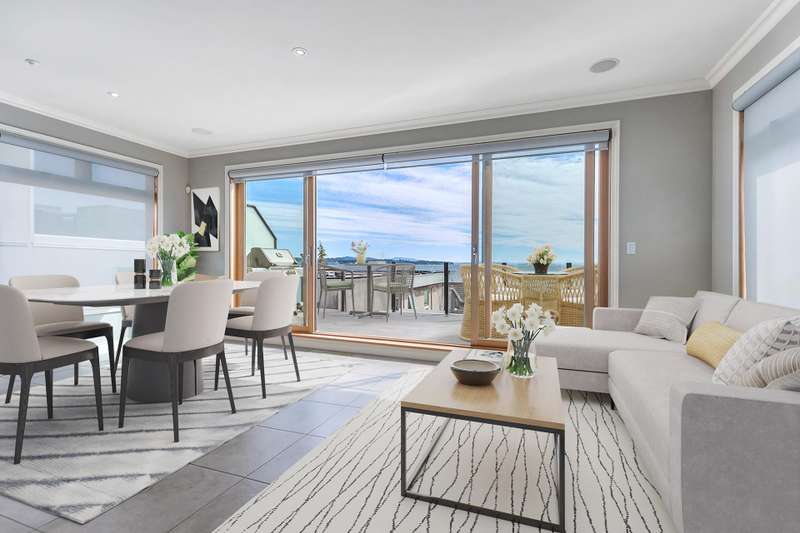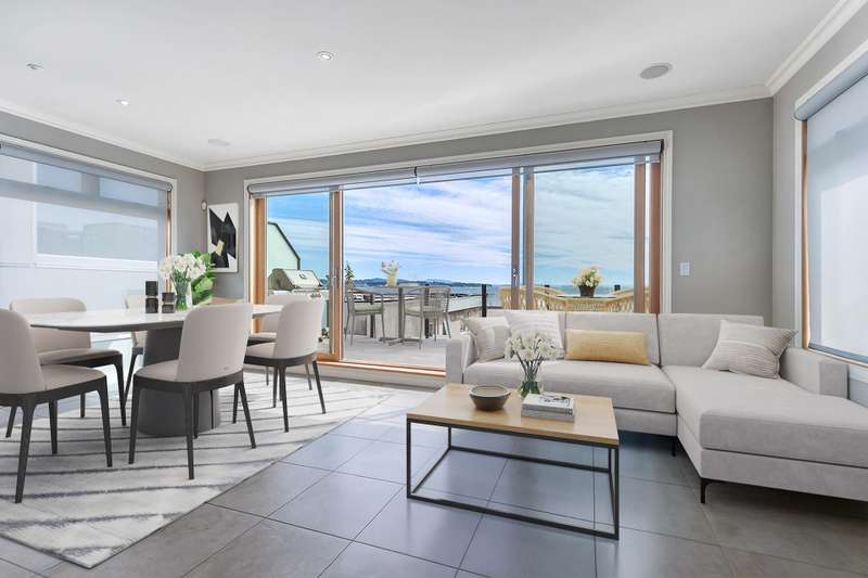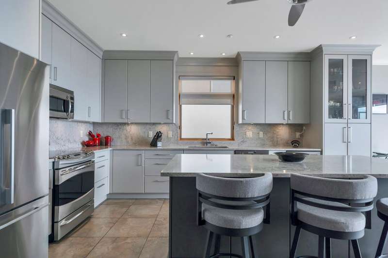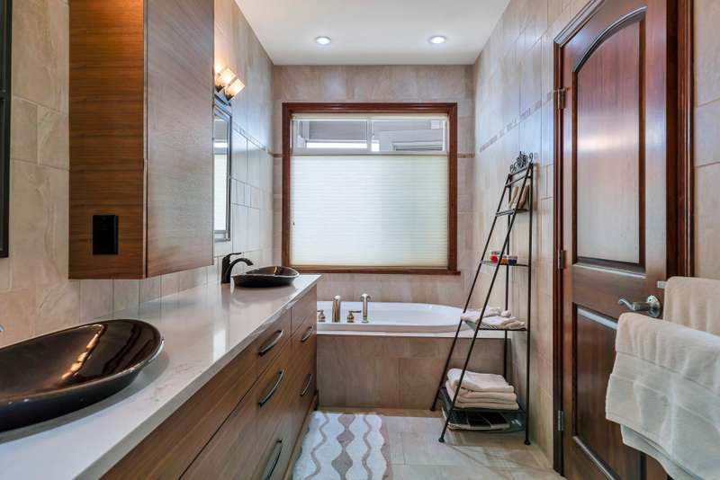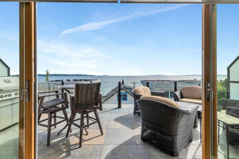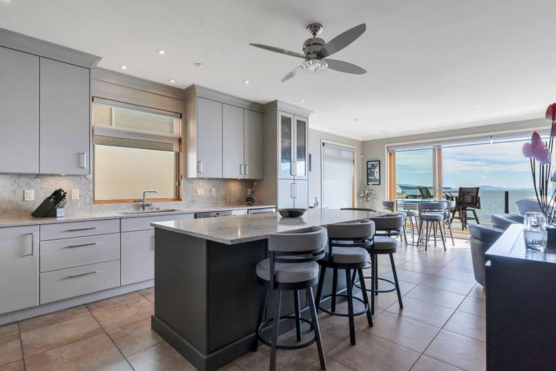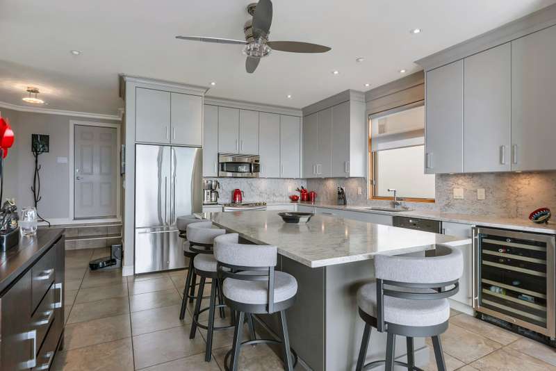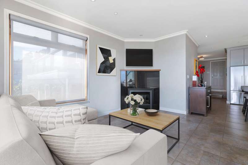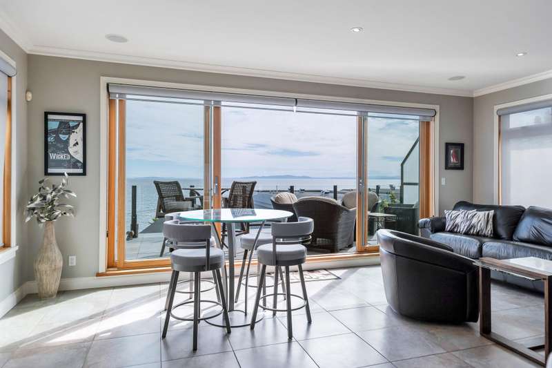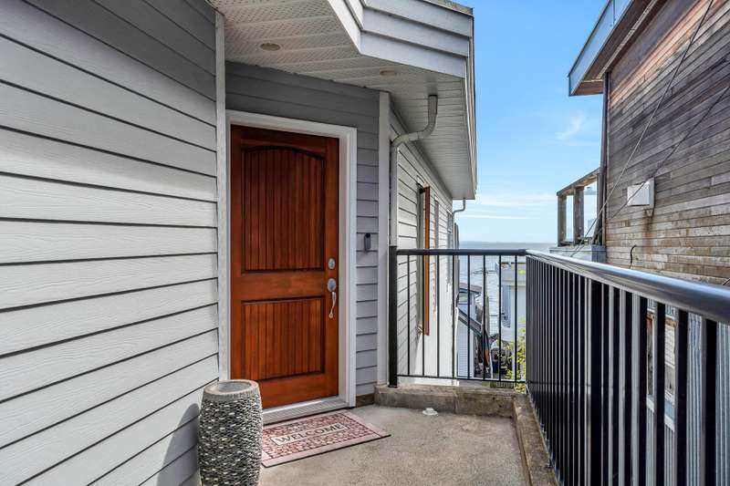 Ocean view updated 3 bedroom hillside home with 2 bedroom legal suite with separate access & laundry and great parking. Quality built home with hot water radiant heat for all 3 levels with 5 zones, low maintenance hardie plank siding. wood metal clad windows & sliding doors, 9' ceilings, tiled floors on the main floor with double 4' sliding doors leading to spacious ocean view deck featuring 2 cm porcelain tiles complimented with topless railings & privacy screens both sides of the deck. Some extra feature include wood interior doors and trims, tall baseboards, crown and detailed ceilings, gorgeous updated kitchen with cabinets to the ceiling complimented with stainless steel appliance package, quartz countertops, backsplash & matching island/breakfast bar with storage. Bonus media room!