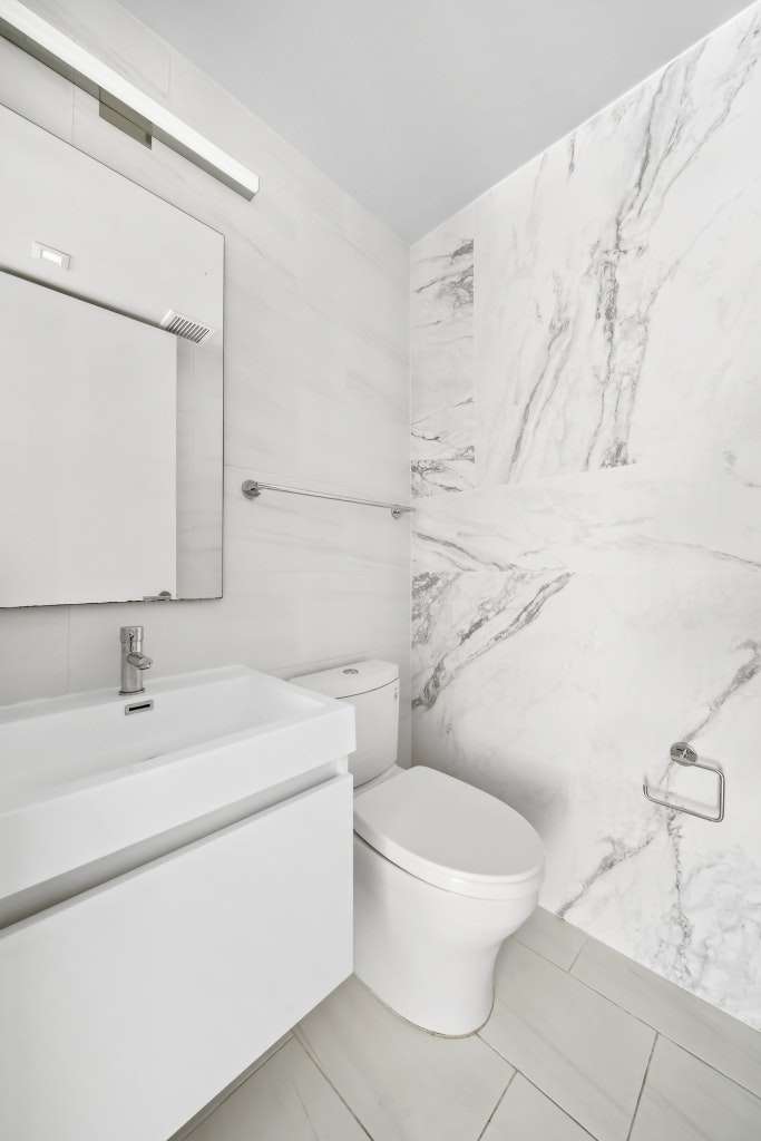 Designed with you in mind. The main living/dining space has wonderful floor-to-ceiling windows, beautiful wood floors, and cool exposed concrete ceilings for a raw NYC vibe juxtaposed against the modern finishes throughout the home.