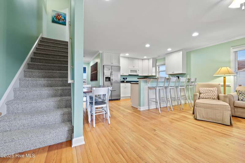 THIRD ROW in Kure Beach with Ocean Views! Perfect for your Primary Residence, Second Home or Investment Property. All will enjoy it's close vicinity to the public beach access and the front and back decks from each of the upper floors for you to relax and enjoy the stunning sunrises and sunsets. With 4 bedrooms / 4.5 baths, there is plenty of room for family and friends. There is also a bonus room and a full bath on the lower level currently being used as a 5th bedroom.