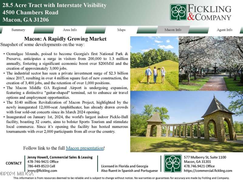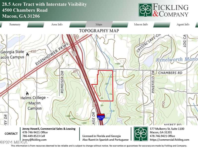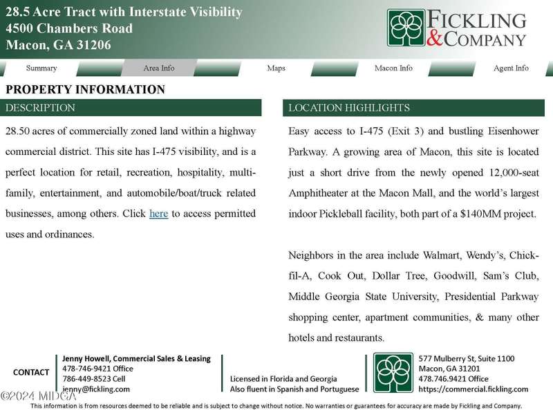 28.50 acres of commercially zoned land within a highway commercial district, with easy access to I-475. Perfect site for hospitality, multi-family, retail, recreation, entertainment. Located by exit 3 and bustling Eisenhower Parkway. This is a growing area of Macon, same area where the newly opened 12,000-seat amphitheater is, as well as the world's largest indoor pickleball facility.