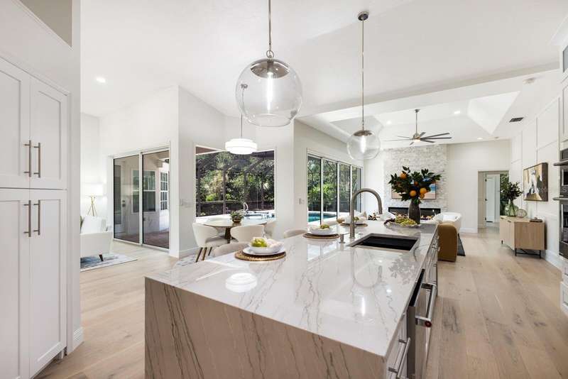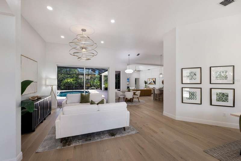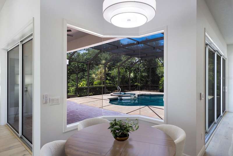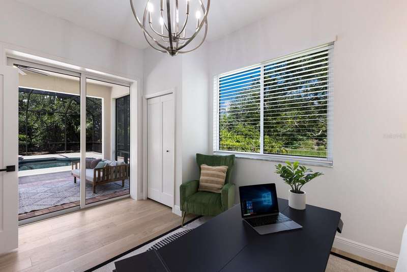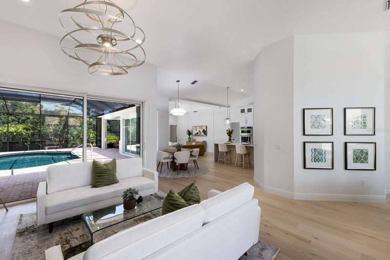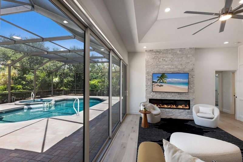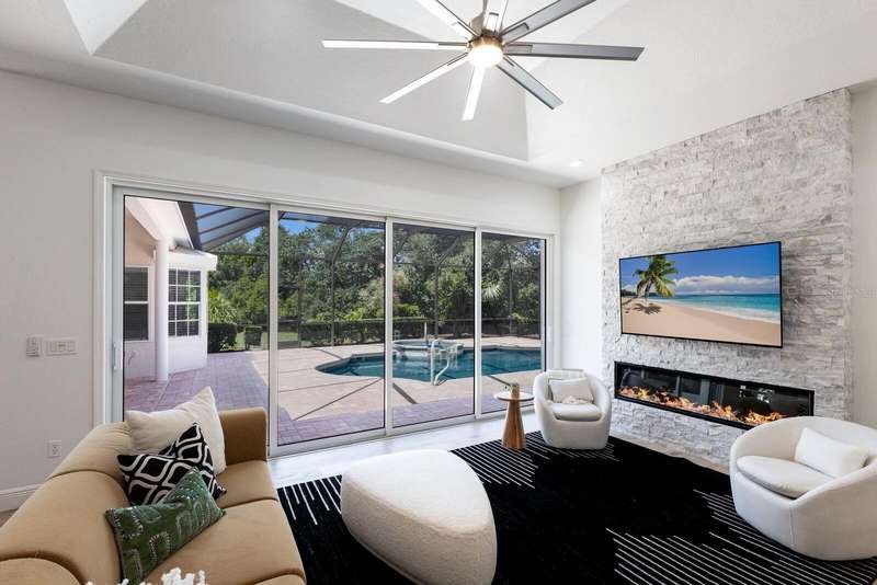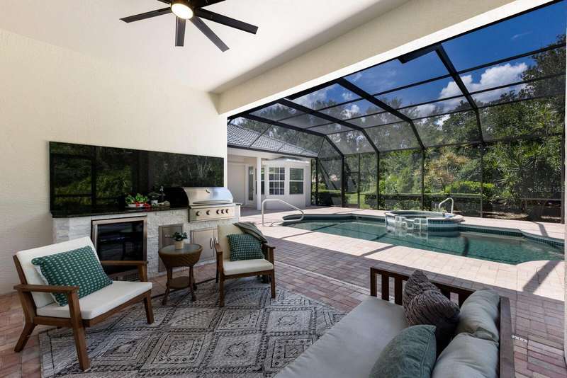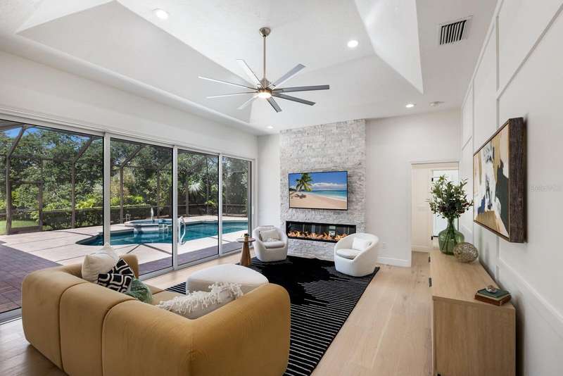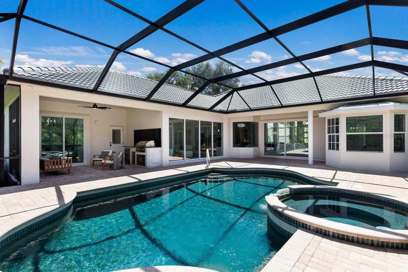 Under contract-accepting backup offers. Welcome to this completely reimagined home in University Park Country Club. Originally crafted by builder Todd Johnson, it just underwent a meticulous renovation including all new impact resistant windows and doors. This spacious residence boasts 4 bedrooms and 3 full bathrooms. From the moment you enter through the double doors you are welcomed with soaring high ceilings providing a naturally lit atmosphere throughout the home. The reconfigured Kitchen is the center point of the home and truly a chef’s dream. The large island offers lots of counter space to prepare and host food for family and guests. The perimeter is finished with custom cabinets, a gas cooktop, and a built-in Refrigerator. Enjoy morning coffee in the breakfast nook that features a large aquarium window providing unobstructed views of the outdoor space, sparkling pool, and lush landscaping as the backdrop. The large family room features an oversized fireplace creating a warm environment to host endless family and friend’s gatherings. The split plan ensures privacy to both family members or guests with 3 bedrooms and 2 full bathrooms situated on one side and the spacious primary suite occupying the opposite wing. The primary suite features a spa like setting with a large walk-in shower, standing soaking tub, dual vanities with makeup counter, private water closet and a generous walk-in closet. Step outdoors onto the covered lanai and enjoy the outdoor space right from your private suite. Large sliders in the main living spaces open to the outdoor space where you are greeted by a pool, spa, and outdoor kitchen, offering a seamless extension to the coveted indoor/outdoor living. The home also includes a generous sized laundry/utility room that leads to an oversized side-entry 2-car garage, featuring a convenient separate door for golf cart access. University Park Country Club is a highly ranked Florida golf course featuring 27 holes of championship golf; tennis and pickleball; fitness center and many social and group activities. Just a quick drive to downtown Sarasota and you will be transformed from the peaceful private setting of UPCC to fine dining, arts & theatres, entertainment, and world-class beaches. With SRQ International Airport nearby and I-75 easily accessible, convenience is at your fingertips. Located just outside the gates is University Town Center with hundreds of nationally known and local shops, restaurants and attractions including Mote Marine Aquarium, Tiger Woods backed Pop Stroke, Nathan Benderson Rowing, and countless other attractions. A minimum social membership is required at UPCC, a residents owned Recreation District.
