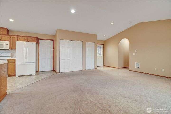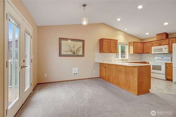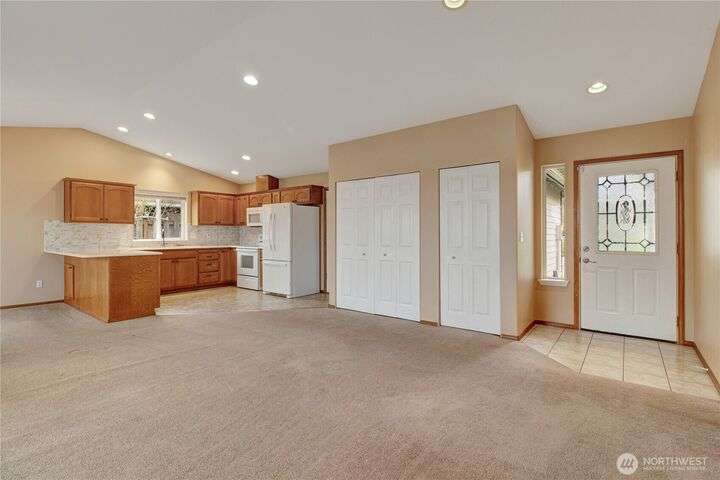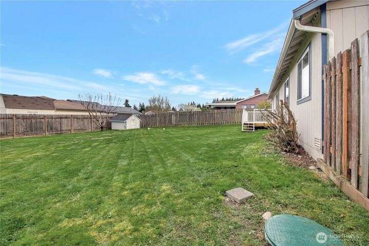 Price Reduction! Pride of Ownership! This rambler is in exceptional condition, including a Brand New Roof with Transferrable Warranty. Features include 3 beds and 2 baths, vaulted ceilings in the living room and kitchen. Spacious Main bedroom has walk-in closet, large bathroom with shower and a jetted tub. Another full bath serves the rest of the house, like new condition. Kitchen is open, roomy, with breakfast bar. Beautiful quartz countertops, lots of storage. Laundry hookups and Water Heater located in garage. 2 car garage with built in shelving. Surprisingly private deck leads to a nice big yard for entertaining, gardening, recreation, fruit trees, etc. Updated, Upgraded septic. Amazing view of Mt Baker, peekaboo view of Port Susan.
