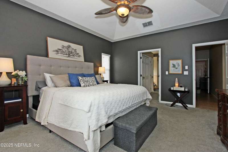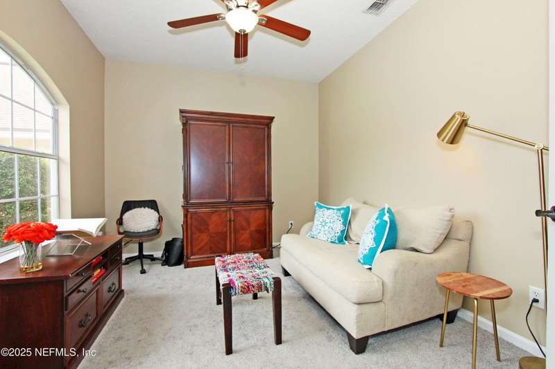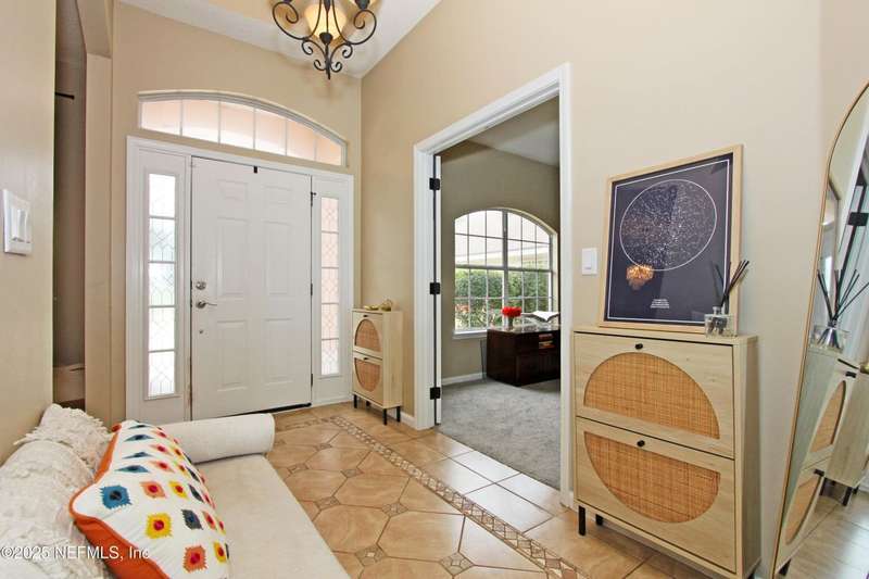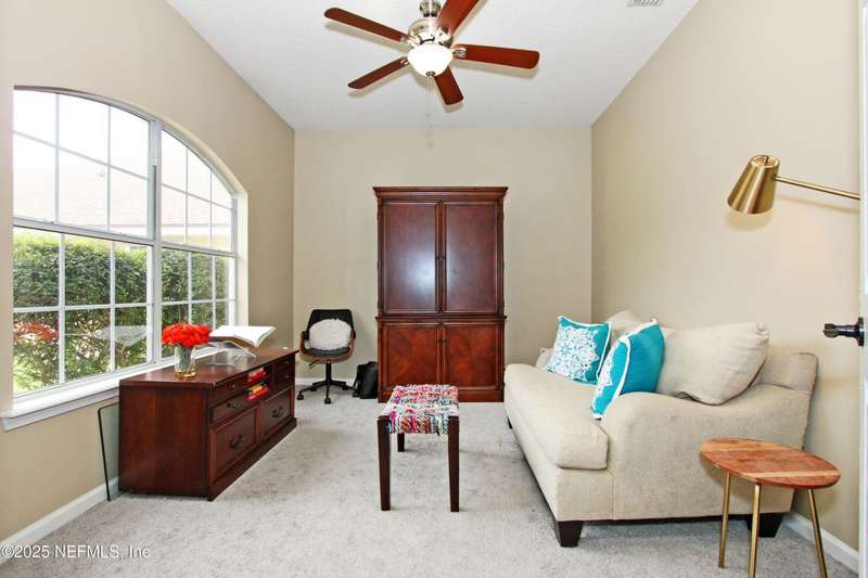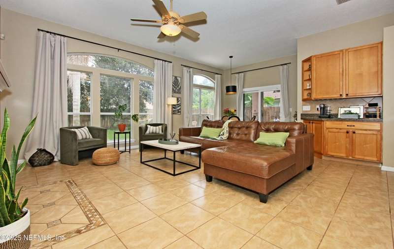 Welcome to this beautifully updated 3BR 2-BA in the Julington Creek Plantation. Formal living room w/ French doors easily used as office or 4th BR . Designed with comfort & style. This home is move in ready and full of upgrades! The Gourmet Kitchen features 42' cabinets, granite countertops, center island, pull out drawers and SS appliances,Open floor plan to Family &dining areas. Vaulted ceilings, recessed lighting, and large windows fill the space with natural light, even a beautiful fireplace. The spacious owner's suite offers a true retreat with two large custom closets direct access to the backyard, and a garden tub,complete w/ dual vanities, a walk-in shower, & relaxing garden tub. The updated second bath boast of modern finishes. .Outside enjoy Florida living, a covered lanai with ceiling fan, extended patio for entertaining, and a fully fenced backyard with room to play, garden or relax in the hammock. Roof 2017, water heater 2023, Windows 2023 & new hareward throughout Bring pickiest buyer you won't be disappointed.