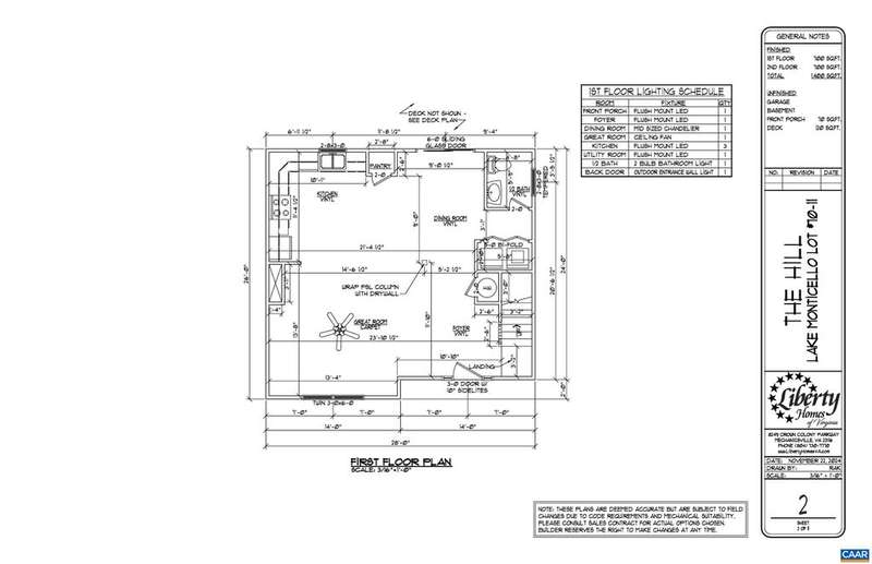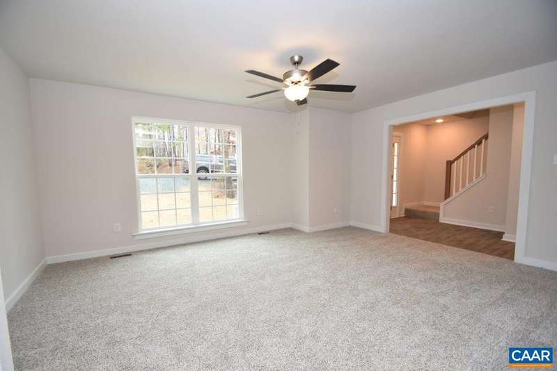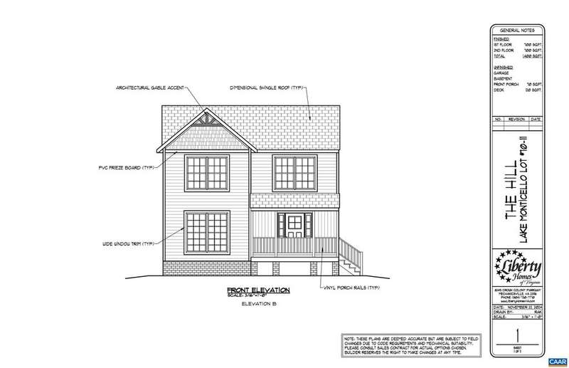 INTERIOR FINISHES UNDER WAY (11/5) Ask how you can receive up to $7,500 in SELLER PAID CLOSING COSTS! The Hill Model at Lake Monticello. The newly designed main living area features an open concept floor plan creating a spacious living area with 36" kitchen cabinets, stainless appliances, 10x12 rear deck, three bedrooms upstairs with pull down attic space for storage, primary bedroom with ceiling fan, LED lights in the other two bedrooms, adult height elongated toilets in the primary and half bath. Exterior upgrades include shake and board and bat siding, wide white window trim instead of shutters and a gable accent that leads you to the welcoming front porch. Black windows on the front of the home and black gutters. Photos are of a previously completed Hill model. JANUARY completion.