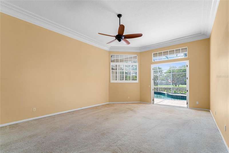 Welcome to this elegant residence in the highly sought-after Osprey Pointe at Hunter’s Green community, where timeless architecture and modern comforts come together. A stately double-door entry opens to soaring ceilings, crown molding, and expansive windows that bathe the home in natural light. Formal living and dining spaces set the stage for entertaining, while the chef’s kitchen, complete with granite counters, custom cabinetry, and a generous center island, flows seamlessly into the family room with tranquil pool views. The owner’s suite is a private retreat with a spa-inspired bath featuring dual vanities, a garden tub, and walk-in shower. Additional bedrooms, a flexible office/den, and well-designed guest accommodations provide comfort and versatility. Step outside to your personal sanctuary: a screened lanai with sparkling pool, lush landscaping, a spacious yard ideal for gatherings or quiet evenings and an incredible view down the fairway! With tree-lined streets, 24-hour security, and access to resort-like community amenities including golf, tennis, parks, and clubhouse, this home offers the best of Florida living in one of Tampa’s premier neighborhoods. Seller is offering a $10,000 closing credit towards paint and/or carpeting.