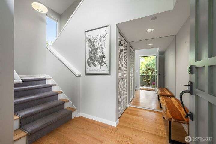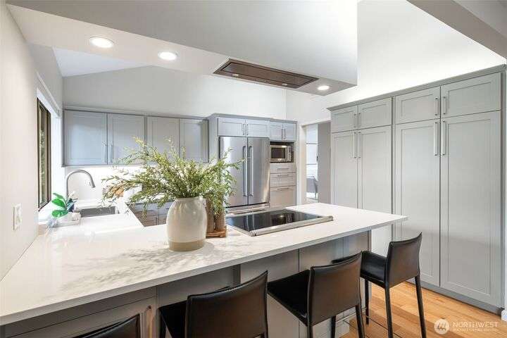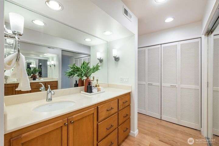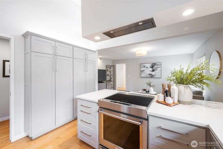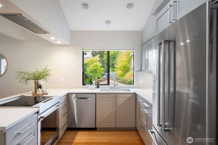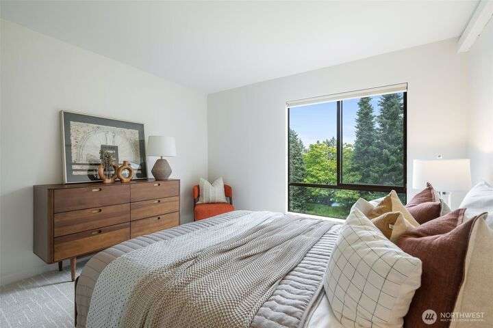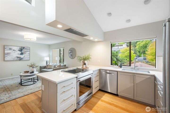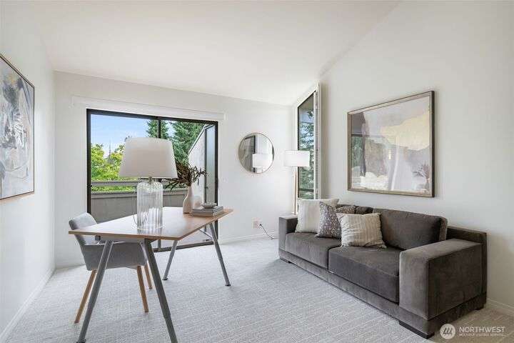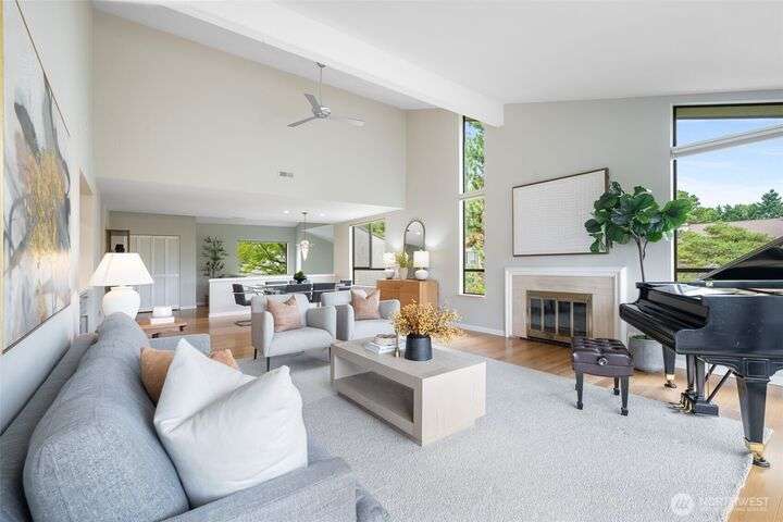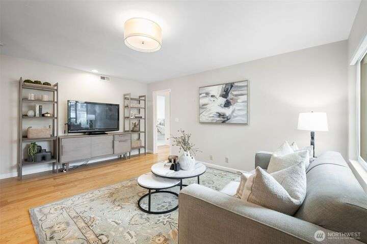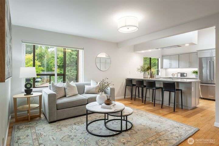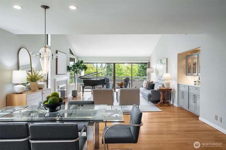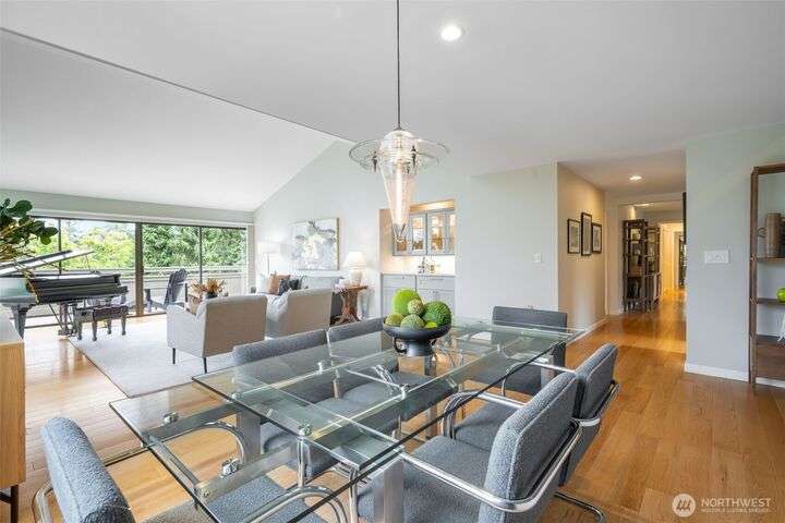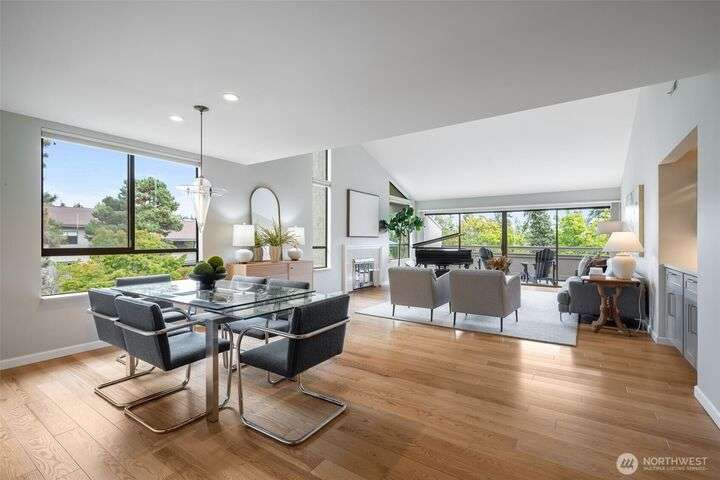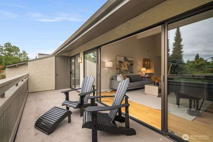 You will love this quiet 3 bedroom sunny top floor corner unit. A wall of sliding glass doors, that open onto your private deck, flood this great room with amazing light and a fresh airy feeling. The formal living and dining rooms share this space with a cozy fireplace, built-ins and enough room for your grand piano. Hardwood floors exude richness and wall spaces create the perfect spot your art. Enjoy the remodeled kitchen, with counter space eating, overlooking the family room/media area. A spacious primary suite has tons of closet space with an ensuite 3/4 bath and the other two bedrooms share another 3/4 bath. Really sweet private garden entry for evening sun, a 1 car garage, pool/ clubhouse and tennis courts to name a few more pluses.