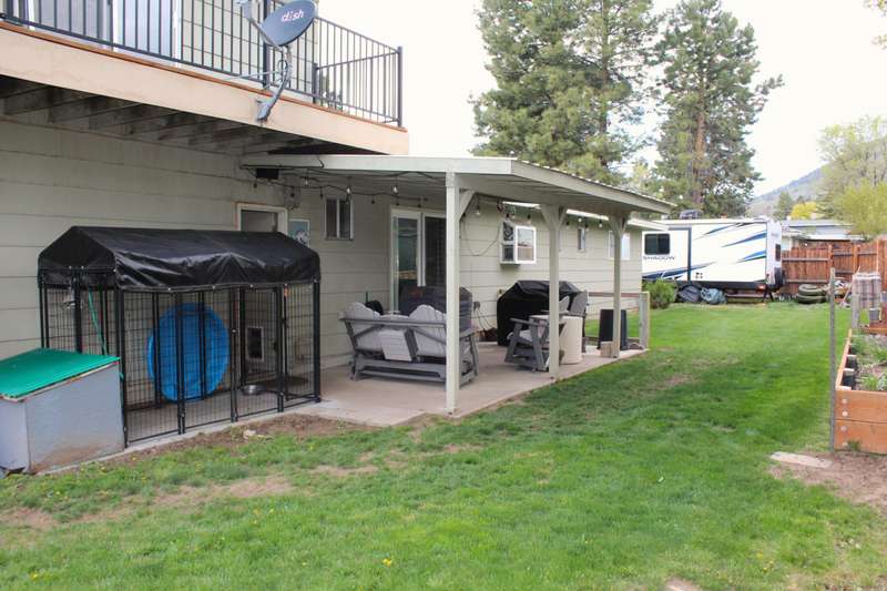 Beautiful Moyina Heights, Klamath Falls! 3 Bedroom Home with Single Level Living, on a Spacious Corner Lot. This Home features an open Living Room, PLUS a 580 sf Vaulted Great Room above the Garage with Wood Ceiling, Heavy Beams & a Stone Hearth that is wood stove ready. This space also lends itself to an optional 4th Bedroom, with a Patio Door opening to the railed Deck, offering Beautiful Views of the Southern Hills! The Home has been Updated, with a Modern Entry, Bench and Coat Rack. Recessed Lighting, New LVP Flooring, Fresh interior Paint, and a New 200 amp Electrical Panel. The Living Room has a Gas Fireplace, and both the Primary and 2nd Bedrooms have Walk-In Closets, with gorgeous Hardwood Floors in the Primary Bedroom. There is ample Storage in the Home, and the Sliding Door opens from the Dining area to the Covered Patio with Fenced Back Yard. 2 Gated RV Parking options, wide & deep Driveway, and a Finished Garage with Cabinetry. Enjoy nearby Public Trails & Parks!