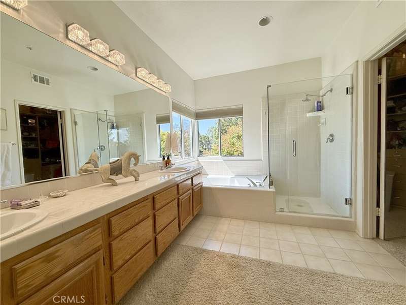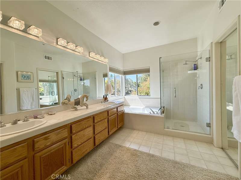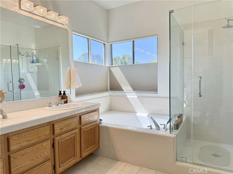 Upstairs, you'll find a large loft and convenient laundry room, along with two secondary bedrooms and a shared bath with dual sinks. The private primary suite offers a generous retreat with dual sinks, a walk-in shower, a separate soaking tub, and a custom walk-in closet with built-ins.