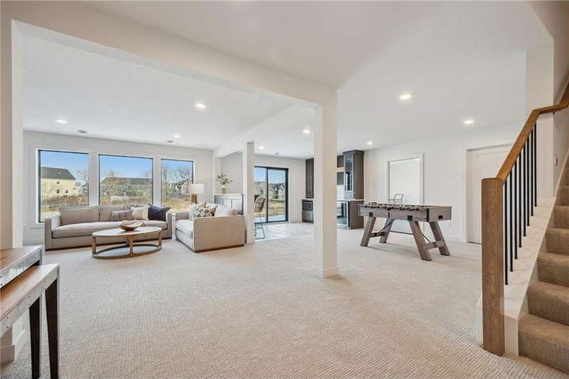 Introducing the BRIDGEWATER SPORT, breaking ground June 2, 2025, with completion expected by January 2026! This stunning home boasts a Great Room with six wood beams, a modern tapered surround fireplace with vertical shiplap, and wood shelves with accent lighting. The custom-designed kitchen includes a spacious Prep Kitchen overlooking the backyard and views of wetlands. Upstairs, enjoy a vaulted Bonus Room, four bedrooms, and a private Owner’s Suite with a spa-inspired bathroom connected to the laundry. The finished lower level features an Indoor Sport Center, a family room with a fireplace, a wet bar/games area, and a fifth bedroom. Situated on a walkout lot, the home includes a 4-car insulated, heated garage with floor drains. Nestled in the Evanswood community with a pool and clubhouse, near a new elementary school (coming soon) and Maple Grove High School. Hanson Builders offers 31 homesites with wooded, pond, creek, and walkout lot views!