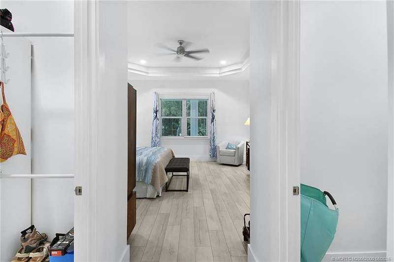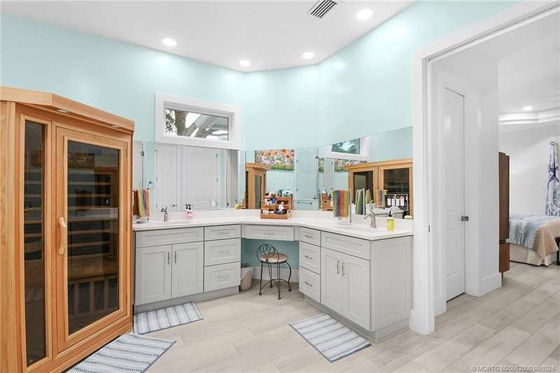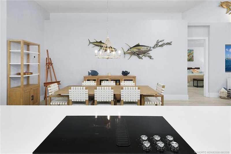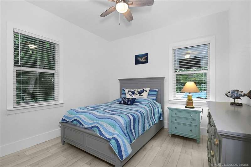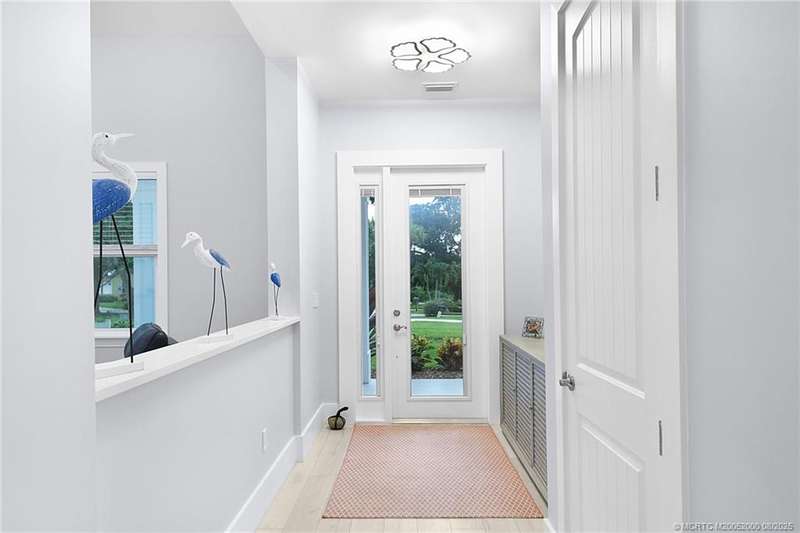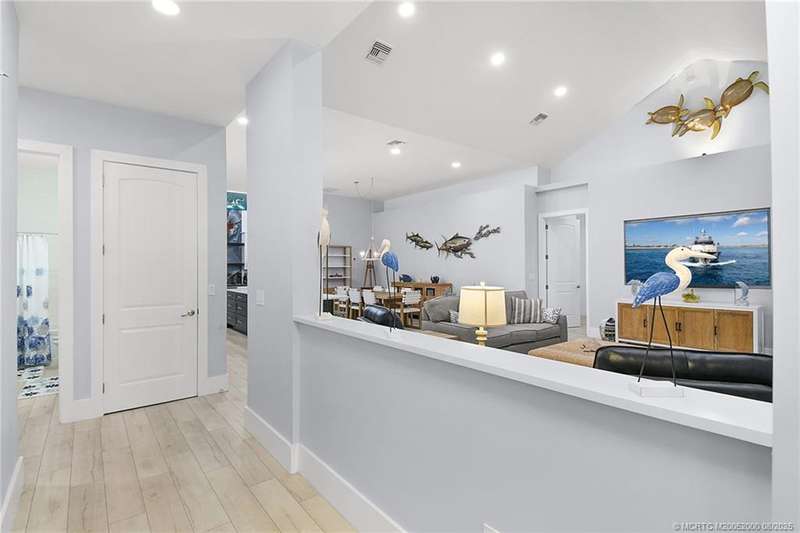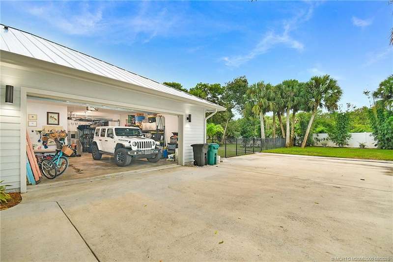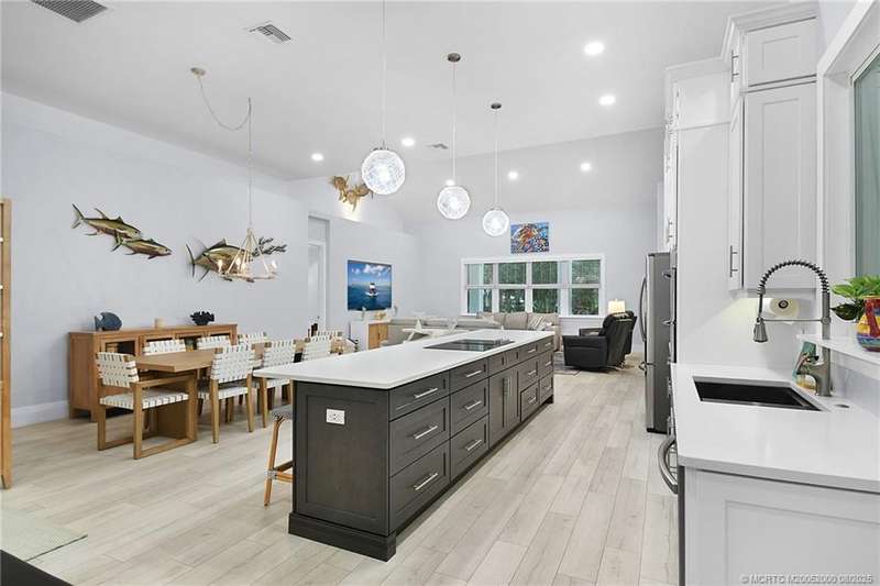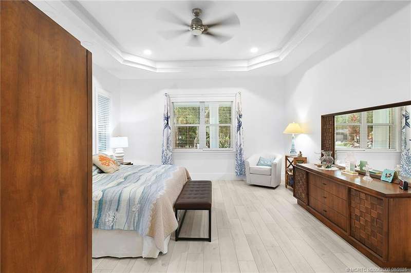 Step inside this Key West–style, custom-built concrete block home, complete with a full-length front porch and timeless curb appeal. This 3-bedroom, 2.5-bath home sits on a half-acre lot and is built with quality in mind, featuring soaring 12-foot ceilings, 9-foot doors, and luxury plank flooring throughout, spray foam insulation and impact glass. The chef’s kitchen showcases white shaker cabinetry, an expansive island, coffee bar, and quartz countertops—perfect for both entertaining and everyday living. The primary suite is a true retreat with oversized walk-in closets, a sauna, and an impressive spa-style shower. Step outside to a screened-in porch with retractable screen overlooking a brand-new saltwater pool and spa. The outdoor living area includes a full summer kitchen with pizza oven, bar, outdoor shower, and lush professional landscaping—creating a serene, private oasis. With room to store your boat or RV, residents also enjoy access to a private day dock with fishing pier.