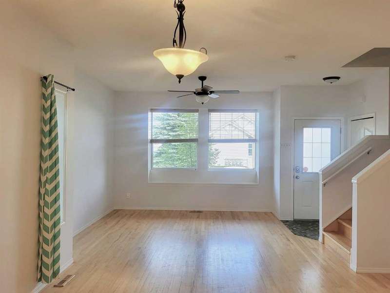 WELCOME to this NEWLY PRICE REDUCED end-unit townhouse offering a spacious and modern living space with fresh paint on both the main and upper floors, giving it a bright and updated feel. The open floor plan creates a seamless flow throughout the main level, perfect for both entertaining and daily living. The kitchen features a breakfast bar, ideal for casual meals or entertaining, and there’s an office area conveniently located just off the kitchen—perfect for working from home or as a quiet study area. Upstairs, you'll find three well-sized bedrooms, including a master suite with its own ensuite bathroom for added privacy, 2 more bedrooms plus a 4 pc bath. The hardwood flooring throughout the main and upper levels adds warmth and sophistication. The developed basement is a standout feature, offering a versatile space with a family room, a den/gym for your fitness or relaxation needs, and a full 4-piece bathroom. Additionally, the basement has a laundry area PLUS GREAT storage on each end of the basement. With two dedicated parking stalls outside the front door and the bonus of being next to visitor parking, you’ll have plenty of room for both residents and guests. The location is prime—just minutes away from schools and shopping, providing easy access to all the essentials. This townhouse is a perfect blend of comfort, convenience, and style.