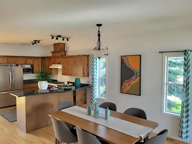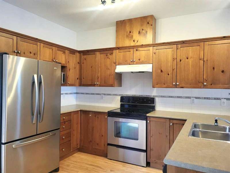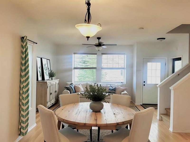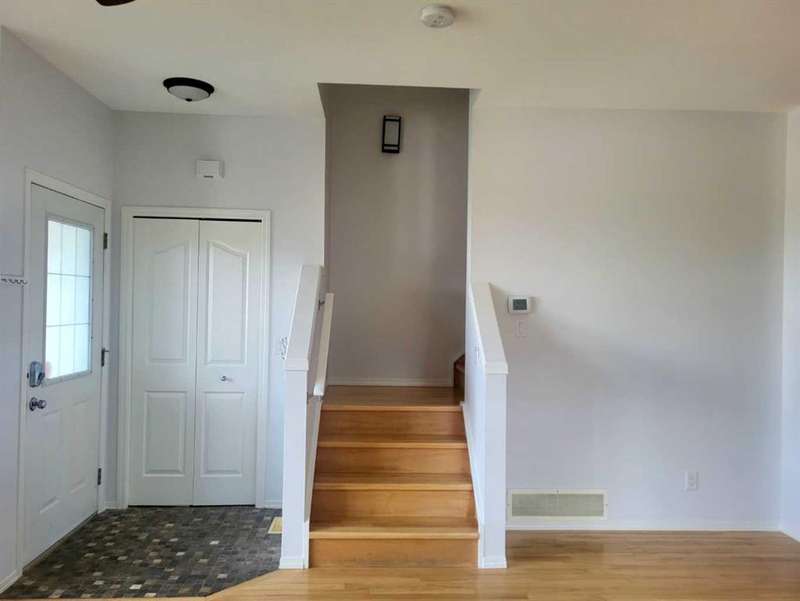 WELCOME to this NEWLY PRICE REDUCED end-unit townhouse offering a spacious and modern living space with fresh paint on both the main and upper floors, giving it a bright and updated feel. The open floor plan creates a seamless flow throughout the main level, perfect for both entertaining and daily living. The kitchen features a breakfast bar, ideal for casual meals or entertaining, and there’s an office area conveniently located just off the kitchen—perfect for working from home or as a quiet study area. Upstairs, you'll find three well-sized bedrooms, including a master suite with its own ensuite bathroom for added privacy, 2 more bedrooms plus a 4 pc bath. The hardwood flooring throughout the main and upper levels adds warmth and sophistication. The developed basement is a standout feature, offering a versatile space with a family room, a den/gym for your fitness or relaxation needs, and a full 4-piece bathroom. Additionally, the basement has a laundry area PLUS GREAT storage on each end of the basement. With two dedicated parking stalls outside the front door and the bonus of being next to visitor parking, you’ll have plenty of room for both residents and guests. The location is prime—just minutes away from schools and shopping, providing easy access to all the essentials. This townhouse is a perfect blend of comfort, convenience, and style.