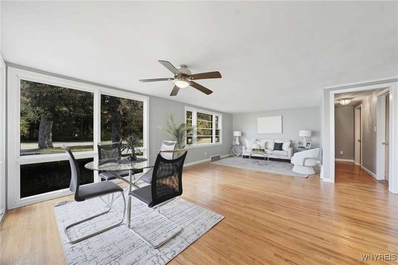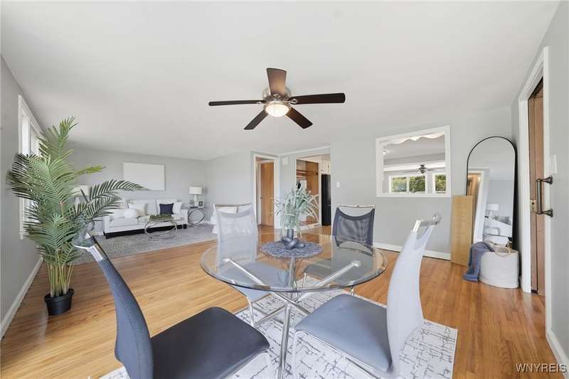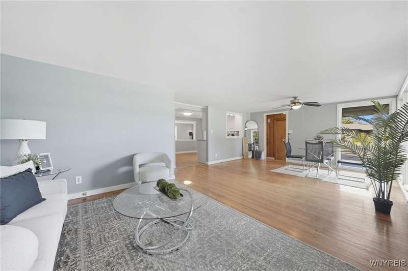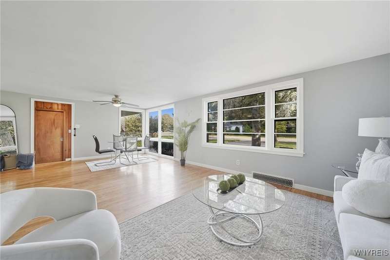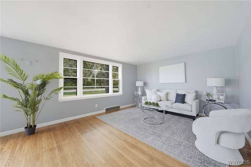Sellers will consider offers between $299,000-$350,000 or higher. Welcome to 4870 Clark St., a well maintained, updated Ranch located in Hamburg just minutes from all the Village has to offer! This 3 bedroom, 2 FULL bath home offers a first floor primary en-suite with a fully updated full bath and great views of the large, private, fully fenced in yard. The spacious living room/dining room combo with recessed lighting throughout, leads into the kitchen which overlooks the family room. The kitchen appliances - including the new stove(2024) and thewasher/dryer which are located on the first floor are included. Inside the family room you will find a gas stove, recessed lighting, new wood flooring and access to the backyard. All 3 bedrooms are generously sized. Additional interior features include fresh paint, original hardwood floors, replacement vinyl windows, and a second updated full bath. The full basement is partially finished. All mechanics are updated- Brand new electrical service line and box (2025), the High efficiencyfurnace and central air unit were updated within the last 8 years , roof (2017), Copper plumbing throughout. The attached garage has an automatic door opener. All you have to do is move in!