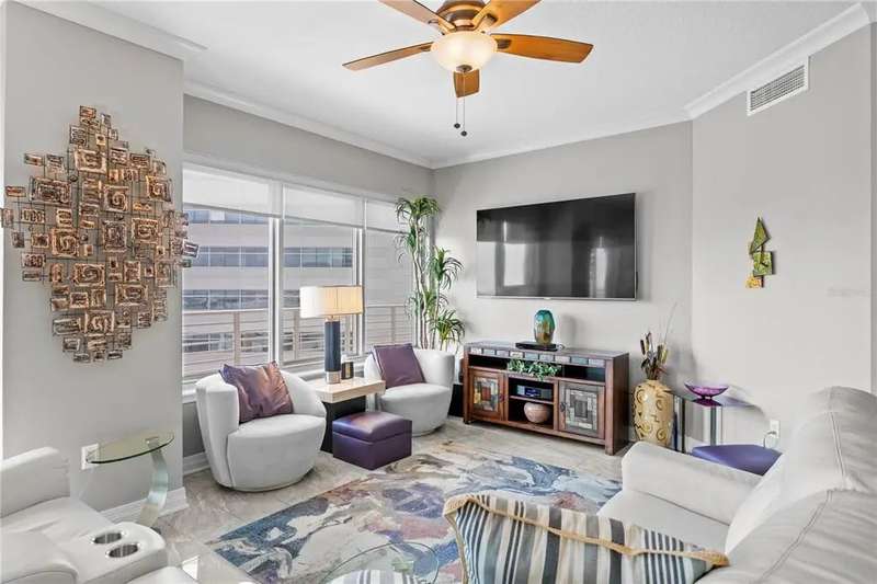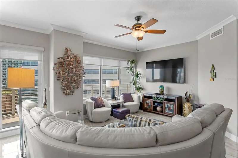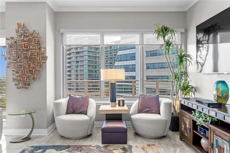 Live at one of the most prestigious addresses in all of Tampa Bay – The Towers of Channelside. Located in the heart of the vibrant Channelside and Downtown Tampa area, this is urban living at its finest. Enjoy an ultra-walkable lifestyle in a newly developed neighborhood surrounded by endless amenities. Just steps from the Water Street District, Sparkman Wharf, Tampa Riverwalk, and Amalie Arena, you’ll have premier dining, shopping, and entertainment right outside your door. You will love Residence 1004, a beautifully upgraded home featuring a chef’s kitchen, elegant tile flooring throughout, and custom built-in closets. The luxurious primary suite boasts a spa-inspired bath with a built-in vanity, two bedrooms include en suite baths for ultimate privacy and comfort. Step out onto expansive 648-square-foot wraparound balcony offering spectacular southwest water and city views from every room in the residence. This unit also comes with the convenience of a dedicated storage locker and two gated, reserved (side-by-side) parking spaces. With the recent installation of four PGT 7700 Winguard impact-rated sliding doors ($56K), this is a well-protected residence. Residents of The Towers of Channelside enjoy resort-style amenities including 24/7 security, a sprawling 5th-floor saltwater pool with heated spa and stunning rock waterfall, outdoor grill stations, two designated dog walk areas, and access to a spacious clubhouse—ideal for relaxing or entertaining.