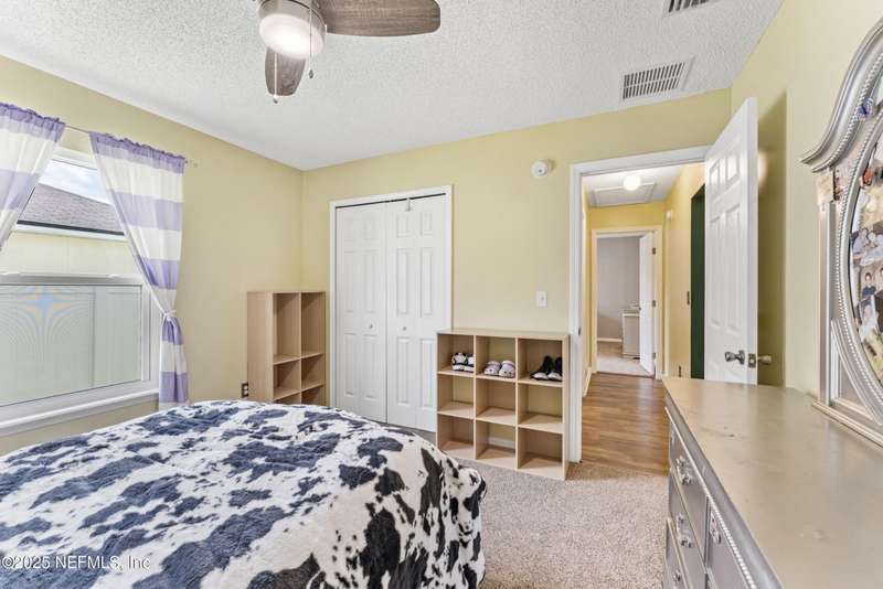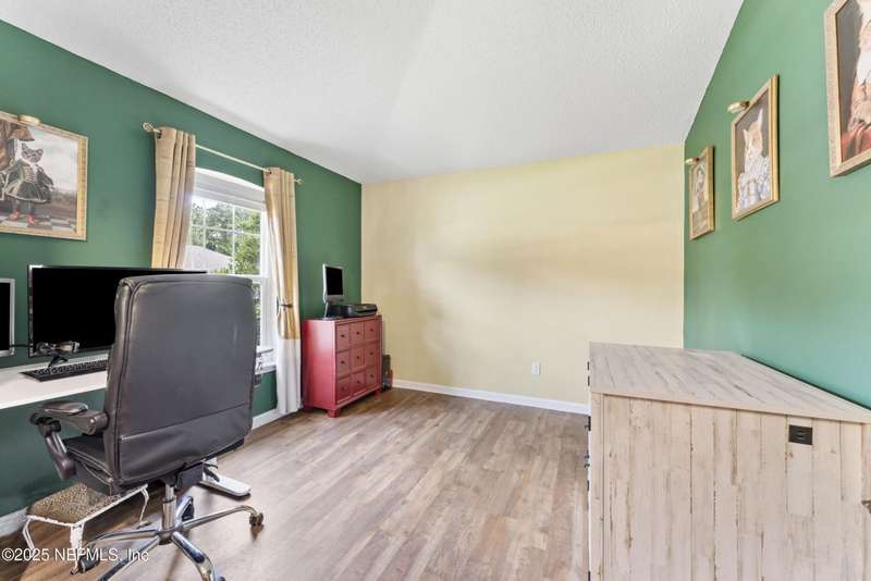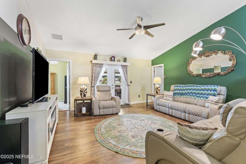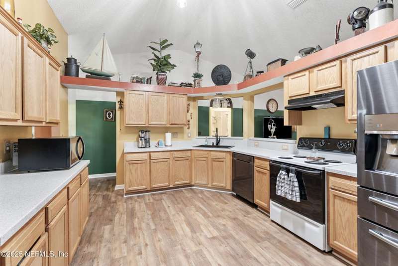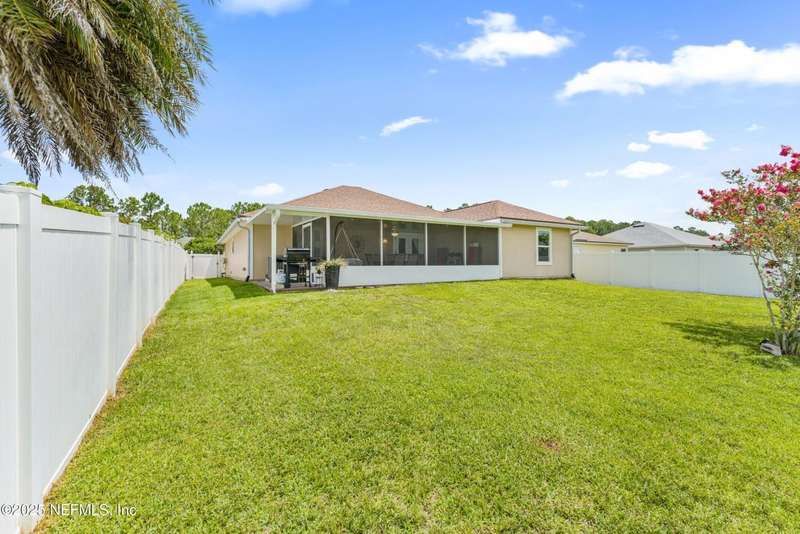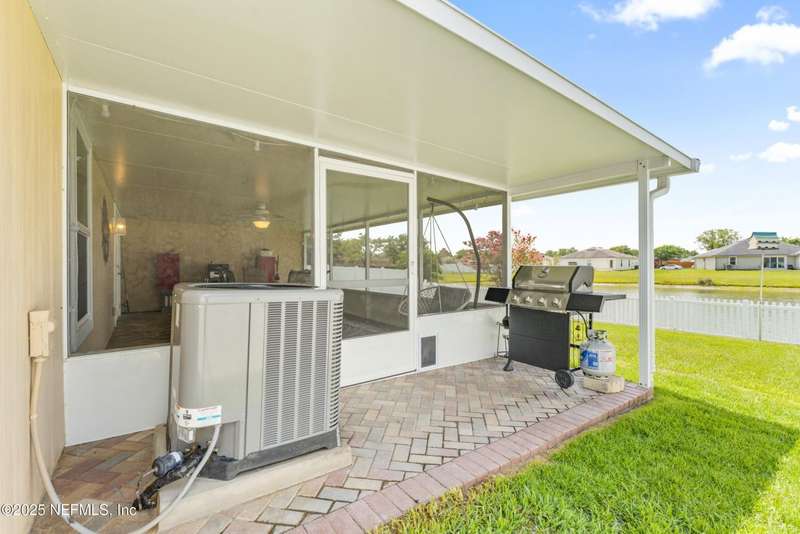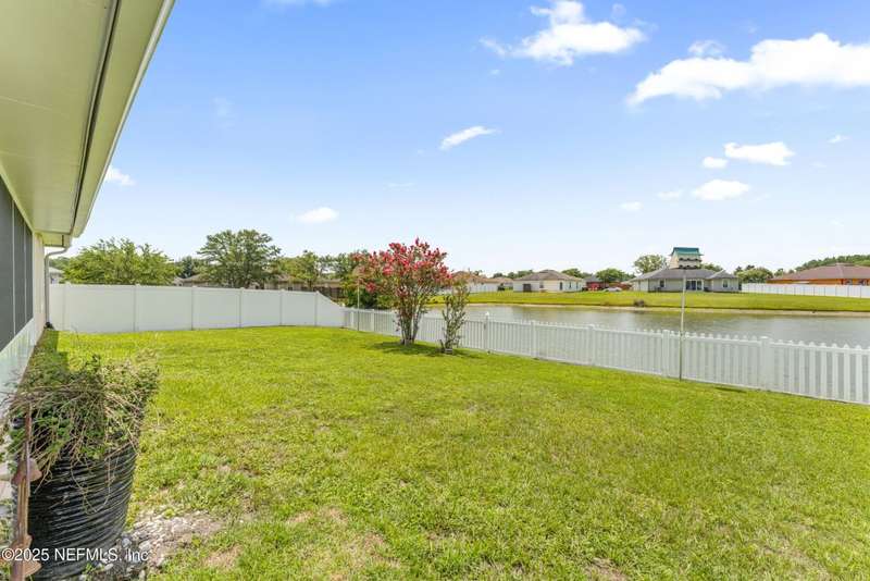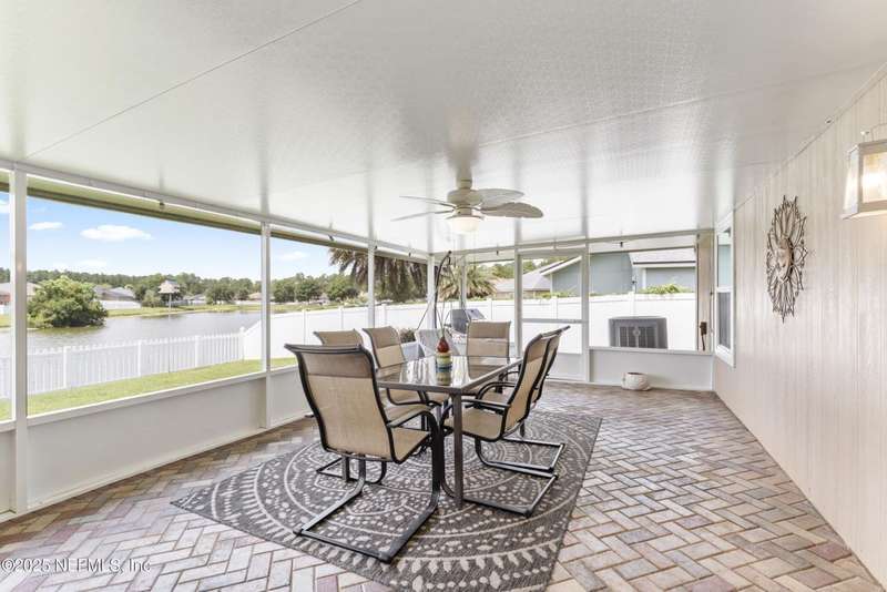Charming One-Owner Home with Updates Galore Including BRAND NEW HVAC & BRAND NEW WATER HEATER with Serene Pond Views. Welcome to this meticulously maintained one-owner home, perfectly positioned on a peaceful pond with a large fenced yard ideal for entertaining. Enjoy evenings on the expansive screened and covered paver lanai, complete with an extended grilling area that makes outdoor living effortless. Inside, this 4-bedroom, 2-bathroom home offers a smart split floor plan with the primary suite tucked privately on one side - featuring a unique built-in wall safe for added convenience and security. You'll also find an office/flex room, a full dining room, and a spacious eat-in kitchen with a skylight that fills the space with natural light. Numerous updates make this home move-in ready, including: New roof (2018), all new windows and doors (2019), HVAC system (just installed), updated bathrooms (2022), Luxury vinyl plank flooring throughout the living areas, carpet in bedrooms for comfort, gutters and full irrigation system. The bright kitchen, ample living spaces, and thoughtful layout make this home functional and stylish. Plus, the washer and dryer convey, making your move even easier. Don't miss your opportunity to own this beautifully cared-for home with quality updates and a scenic backyard retreat!