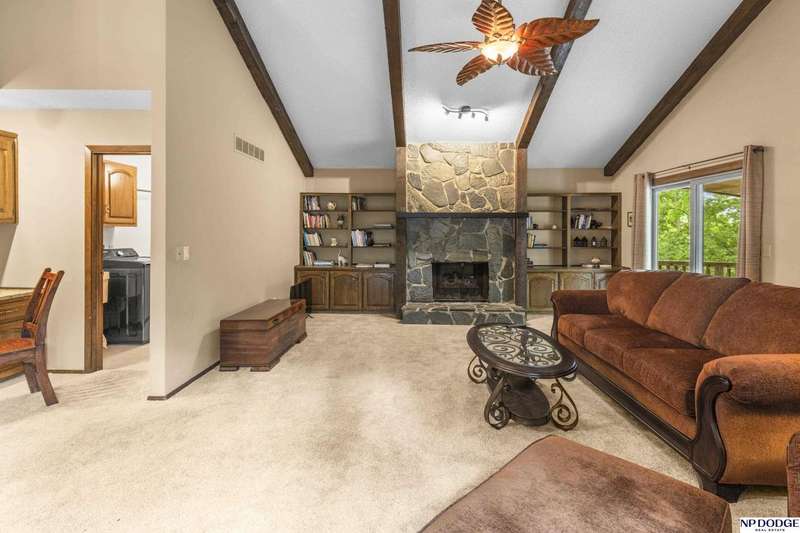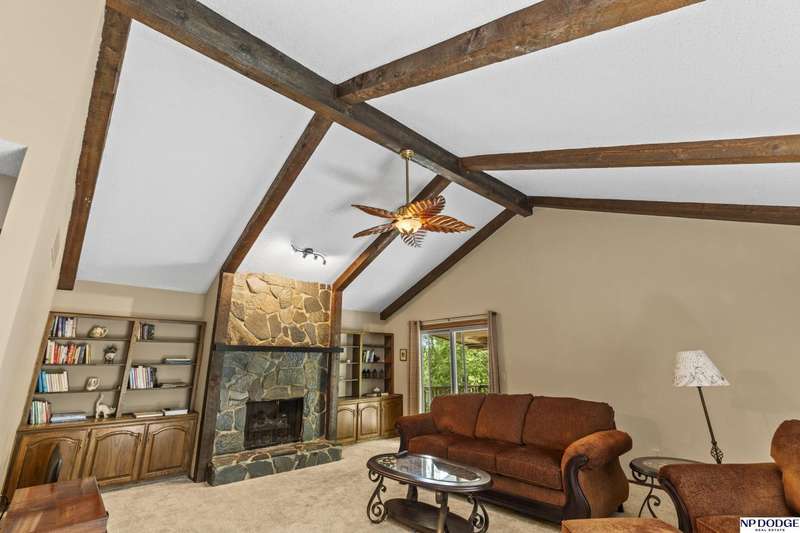 Rare stand-alone townhome tucked deep in peaceful, sought-after Fontenelle Hills! Enjoy private, low-maintenance living with stylish comfort; bamboo floors, vaulted wood-beamed ceilings, and two cozy fireplaces. The light-filled kitchen impresses with granite counters, stainless steel appliances, and soaring ceilings. Two spacious bedroom suites, one on each level offer ideal flexibility. The upstairs retreat features a fireplace, huge walk-in closet, and spa-like bath with double sinks, jetted tub, and walk-in shower. You' ll love the handsome wood-paneled office and the vaulted great room with built-ins and direct access to the second covered deck. No traffic noise here, just birdsong! HOA covers mowing, snow removal, gutter cleaning, plus access to the community pools. Hurry!