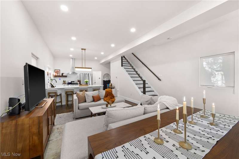 Don't miss this luxury designed, move-in ready newer construction single family home in Ohio City. Built in 2023, this like-new home has 12.5 years of tax abatement remaining, allowing you to enjoy luxury living at a significantly reduced cost. Step inside through the front porch & immediately feel the impact of the expansive ceilings, abundant natural light & seamless open-concept layout. The main floor is ideal for entertaining, with a combined living & dining area that flows effortlessly into the eat in kitchen. Here, you'll find sleek stainless steel appliances, custom dolomite countertops, & ample storage throughout. Toward the back of the home, you'll discover a large walk-in laundry room with potential for flexible use. This level also features a convenient half bath, large coat closet & direct access to the attached two-car garage. Downstairs, the fully finished basement offers additional living space that can be tailored to any lifestyle. Perfect for a home gym, movie room, playroom, the possibilities are endless as it includes a half bath. Upstairs, you'll find three true bedrooms, a rarity in new construction at this price point, including a primary suite complete with a spa-inspired bathroom featuring rich dark tile, an oversized walk-in shower & a large walk-in closet. The two additional bedrooms offer generous closets, high ceilings, & abundant natural light. A recently lime-washed second full bathroom adds a calming ambiance for guests & family alike. Finishing off the second level is your own private, covered walk-out porch- a serene space to relax & unwind at the end of the day. Off the side of the home is a small green space perfect for a garden or pet area! Located in the SOLO district of Ohio City with easy access to I -90, 4219 Orchard Avenue offers the perfect blend of modern comfort, thoughtful design, & unbeatable location. Easily walk to Lorain Ave restaurants, bakeries & bars. This is a one of a kind home that you don't want to miss!