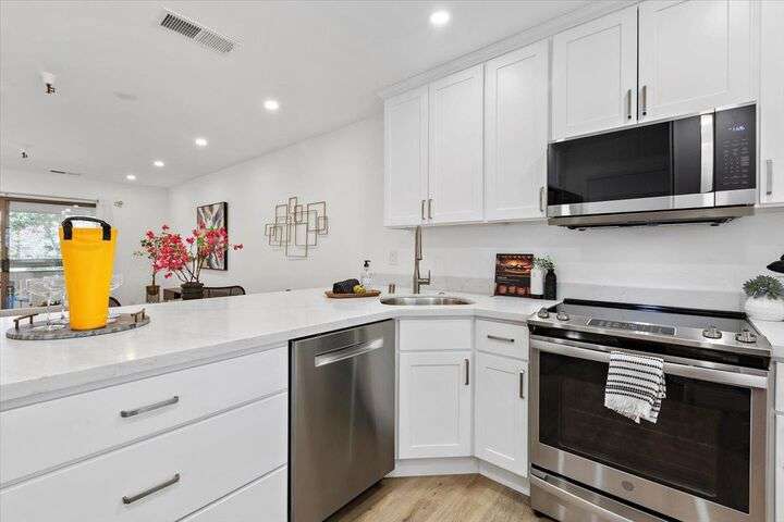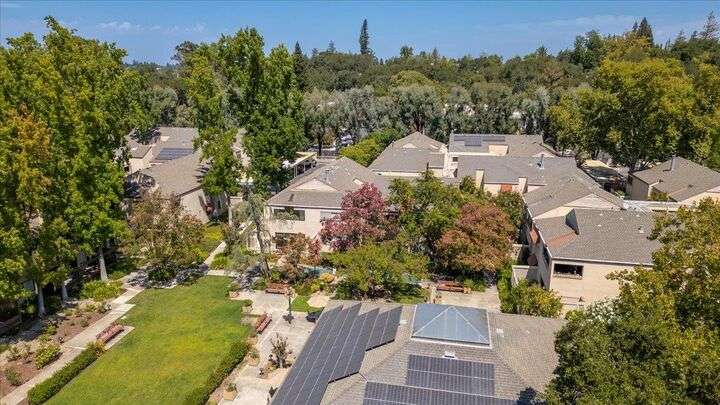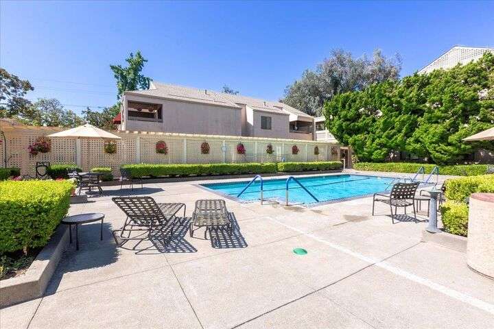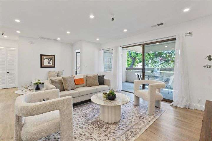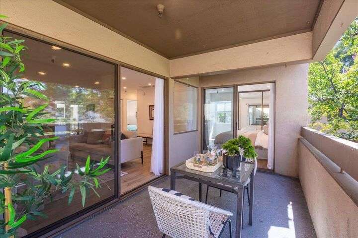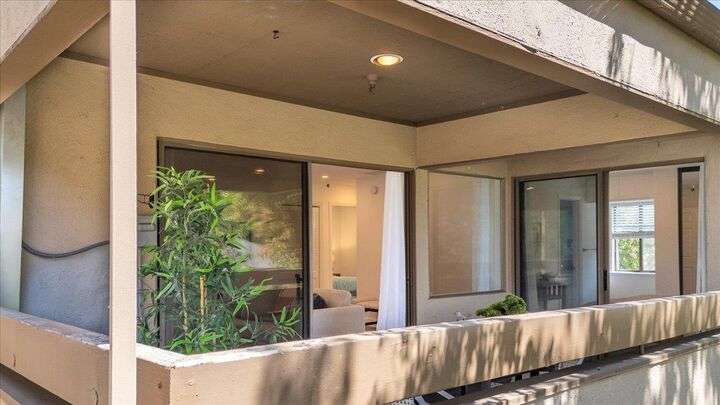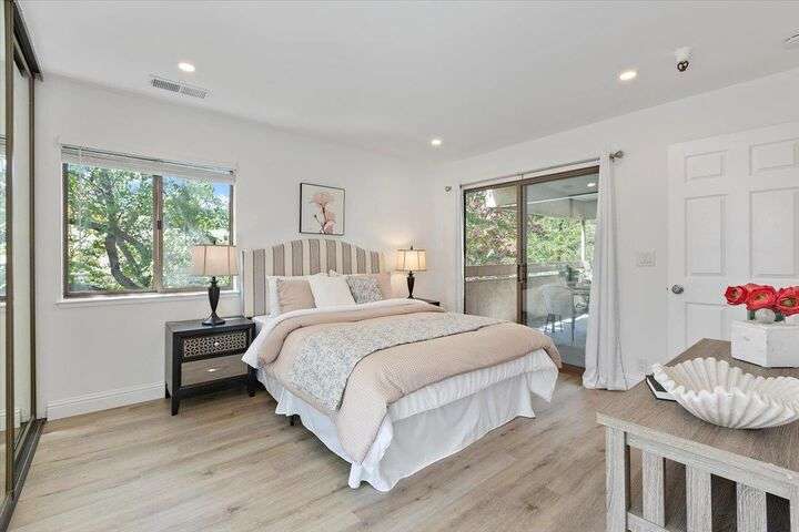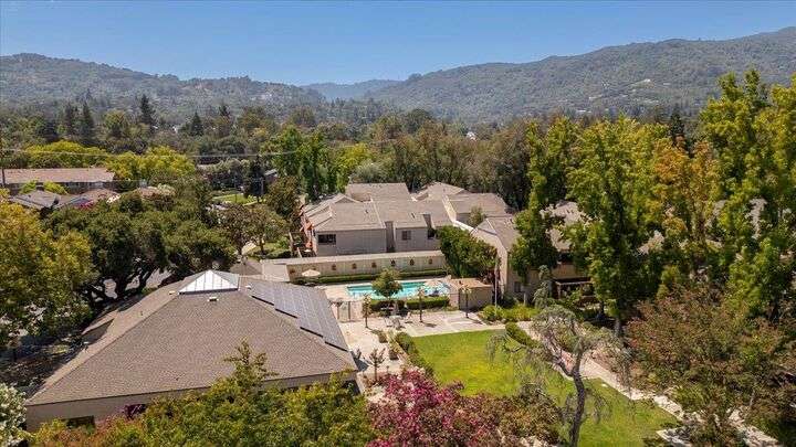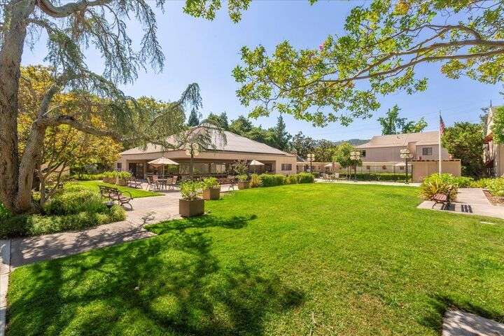 Stunning Interiors with Views, Views, Views! Premiere corner unit in the heart of downtown Los Gatos. Located in the highly sought-after Los Gatos Commons, a premier gated community for ages 55+, this home offers the best location with stunning mountain and greenbelt views. Renovations from top to bottom, the light-filled interior features a modern farmhouse-inspired kitchen with quartz countertops, newer stainless steel appliances. Elegant wood-look plank flooring throughout, complemented by recessed lighting, central heating, & AC for year-round comfort. Luxurious Primary Suite. Two renovated baths. Elevators in community, no stairs required! Resort-style amenities include a solar-heated pool, spa, fitness center, clubhouse, library, game room, BBQ area, lush gardens, and covered walkways for year-round strolls. Secured behind gates for peace of mind, with one assigned covered parking space plus storage and additional open parking. HOA provides water, garbage, basic cable and internet.