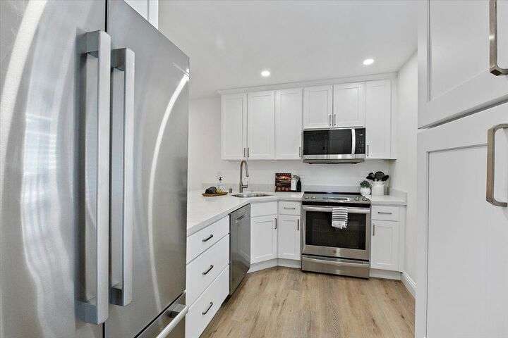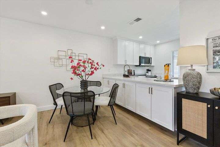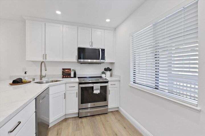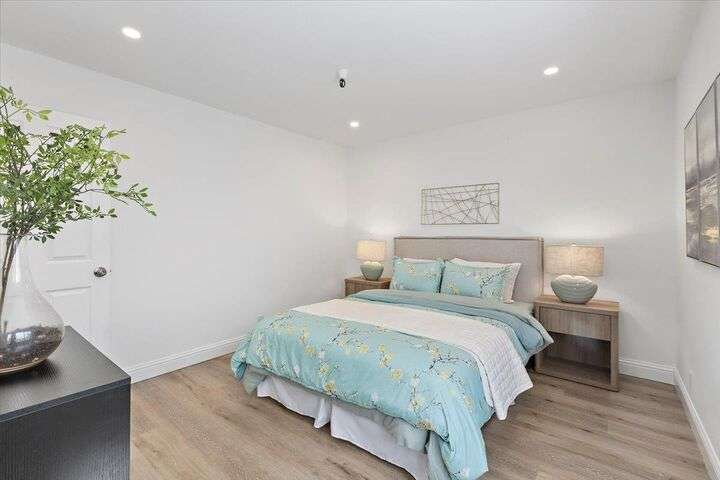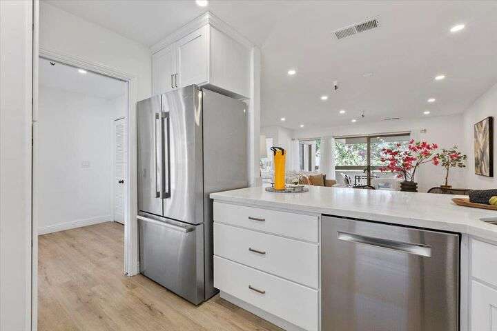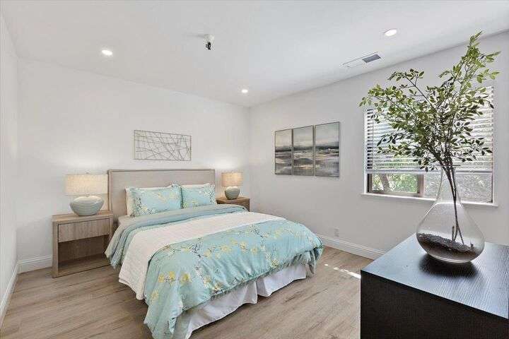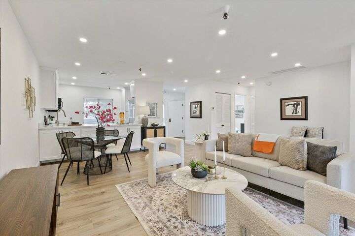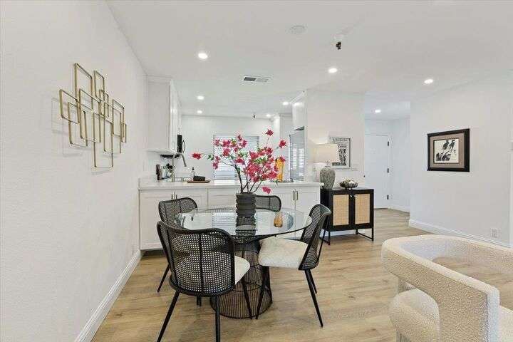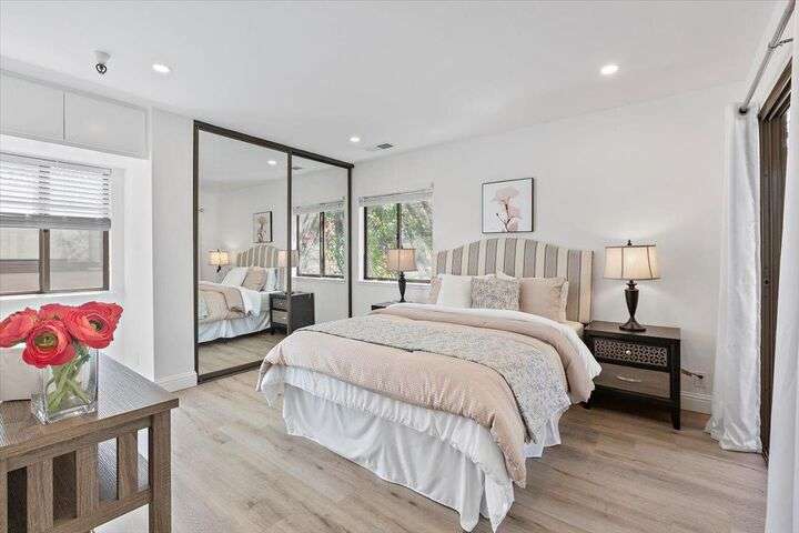 Stunning Interiors with Views, Views, Views! Premiere corner unit in the heart of downtown Los Gatos. Located in the highly sought-after Los Gatos Commons, a premier gated community for ages 55+, this home offers the best location with stunning mountain and greenbelt views. Renovations from top to bottom, the light-filled interior features a modern farmhouse-inspired kitchen with quartz countertops, newer stainless steel appliances. Elegant wood-look plank flooring throughout, complemented by recessed lighting, central heating, & AC for year-round comfort. Luxurious Primary Suite. Two renovated baths. Elevators in community, no stairs required! Resort-style amenities include a solar-heated pool, spa, fitness center, clubhouse, library, game room, BBQ area, lush gardens, and covered walkways for year-round strolls. Secured behind gates for peace of mind, with one assigned covered parking space plus storage and additional open parking. HOA provides water, garbage, basic cable and internet.