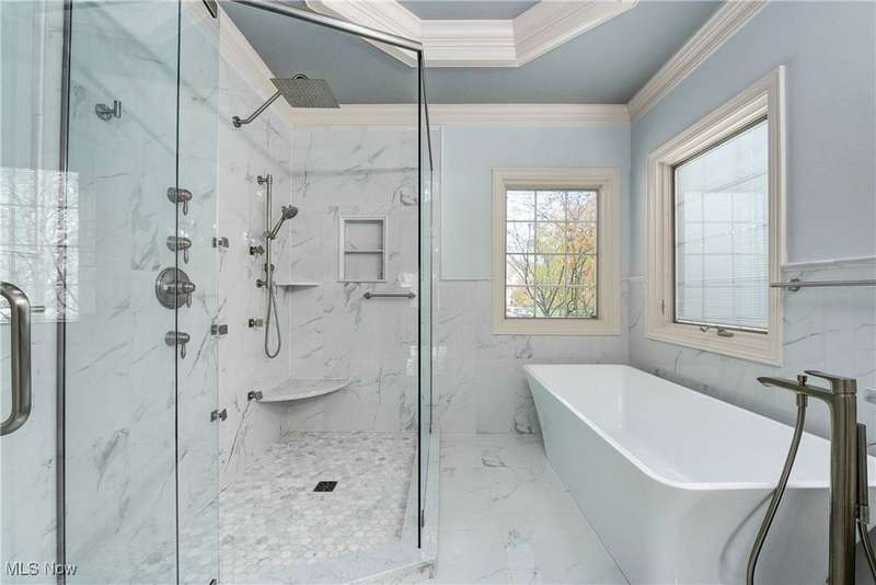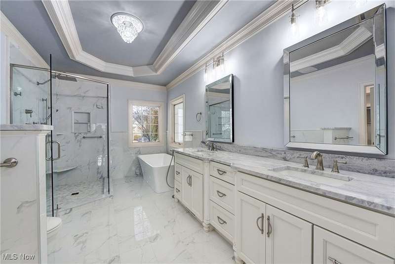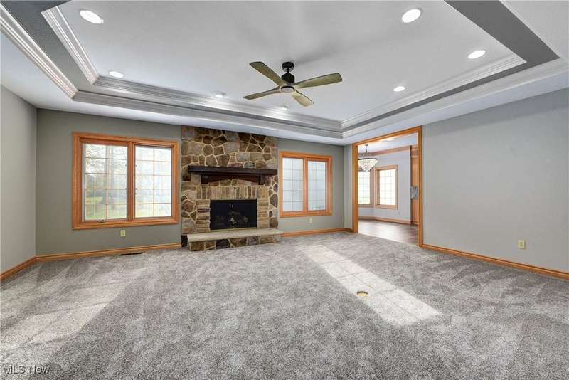 Luxury Rental available NOW!!! Beautiful Brick French Provincial Valore Built home of over 4100 sq ft of living space on the first two floors located on a private landscaped cul de sac street in Cornerstone with a 3-car side garage and fenced in back yard. Your grand entrance features a 2-story foyer with chandelier, marble floor and a circular staircase that leads to a second floor with 3 additional bedrooms and 2 full baths. Located off the foyer is a private study featuring French Doors and built-in cabinets. The formal living room and dining rooms have floor to ceiling windows providing an abundance of natural light and great space for entertaining. The beautifully updated kitchen is complete with quartz countertops, great cabinet and pantry space, plus a large island that is perfect for entertaining. Additionally, the kitchen offers a separate eating area with a wall of windows offering delightful views of the private backyard. Next to the kitchen is the family room with a tray ceiling and stone faced gas fireplace with wood mantle. The first-floor layout offers a large owners suite with tray ceiling, updated ensuite glamour bath includes marble floor, soaking tub and tiled shower, along with a spacious walk-in closet. Finishing out the first-floor space is a laundry room, storage closet and guest 1/2 bath. The lower level has over 900 sq ft of finished space with 9' ceilings, plus a 1/2 bath. Off the second floor there is even an attic for extra storage. The exterior of the home features a covered front porch and is beautifully landscaped with a private raised patio and tree lined back yard. This prime location puts you close to shopping, schools, I 90 and I 480 along with the airport. Don't miss this rare opportunity to rent a beautiful high-end residence in a private location with immediate occupancy. Schedule your showing today!