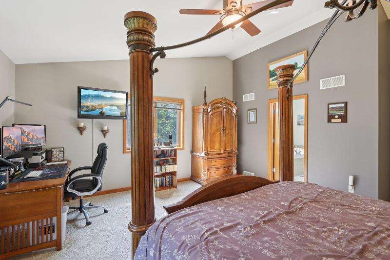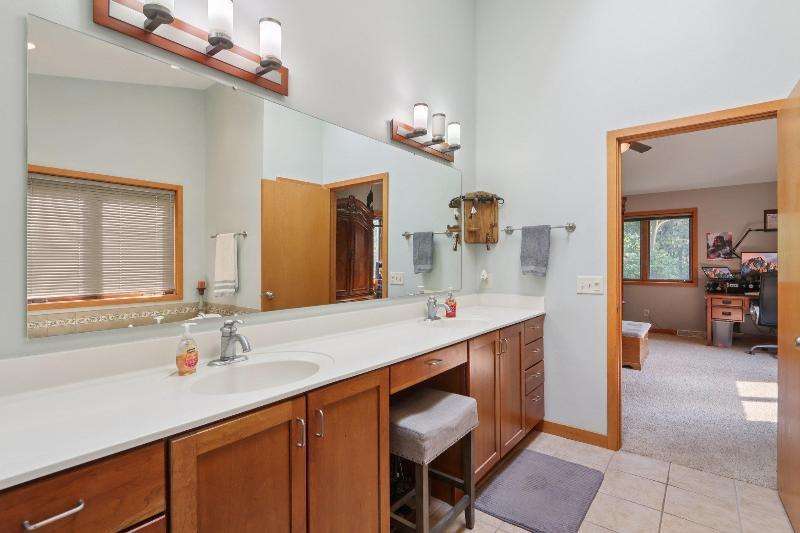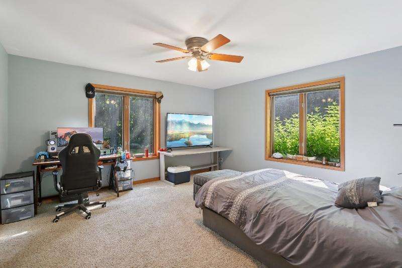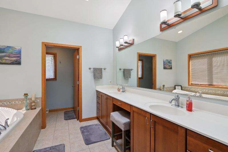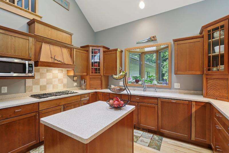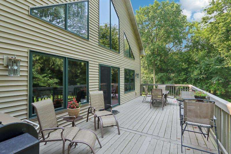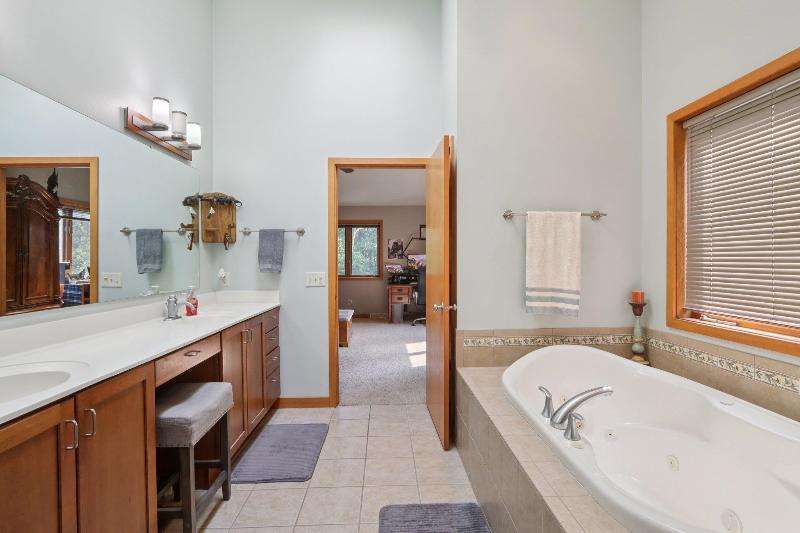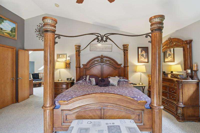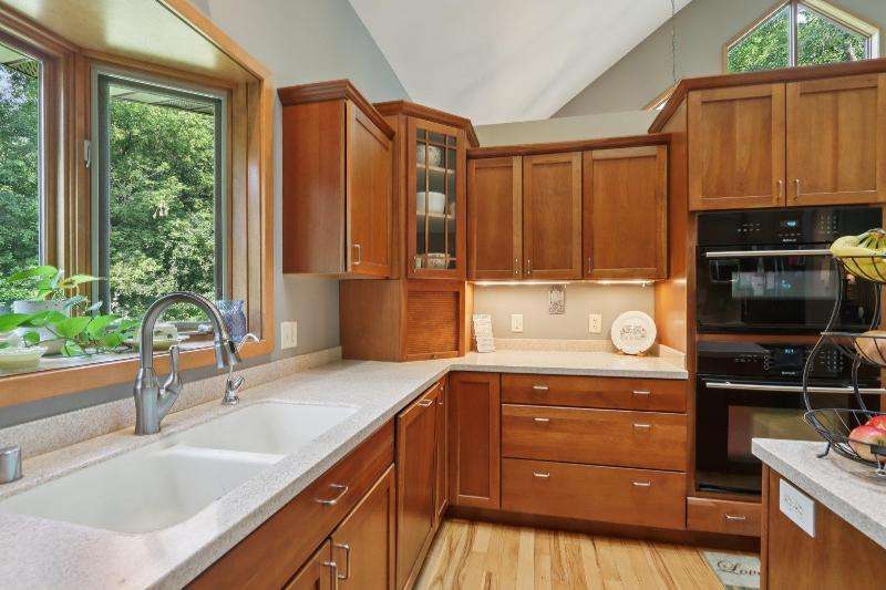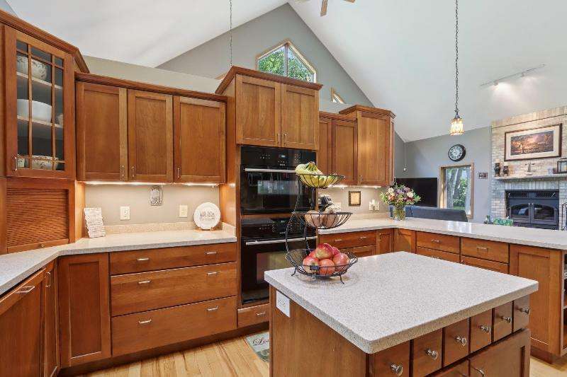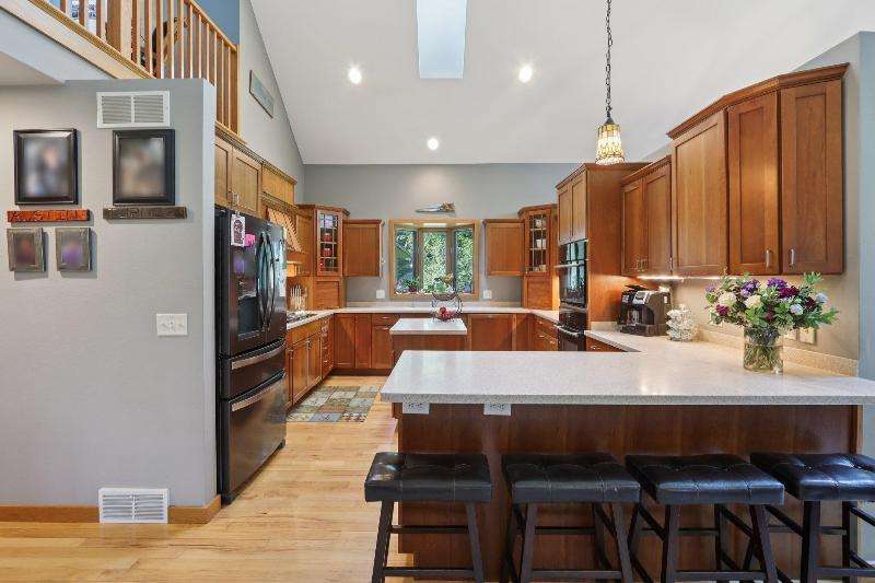 Stunning country home that offers the best of 2 worlds: wooded, rural privacy & minutes from shopping, dining & major routes. Nestled on 2.44 acres, this A-frame-inspired home is flooded with natural light thanks to its 20ft vaulted ceiling, soaring wall of windows & multiple skylights. Inside, you'll find generously sized rooms including a private second-level primary suite. The newly finished lower level adds even more living space, featuring a 4th bedroom, full bath & flexible areas for a home office or recreation. Outdoor lovers will love the perimeter trail through your own woods! The lovely deck for relaxation & a firepit perfect for stargazing. Huge heated garage for the hobbyist w/ bonus RV parking/hookups outside. Leaf guards on gutters too. Quick close possible.