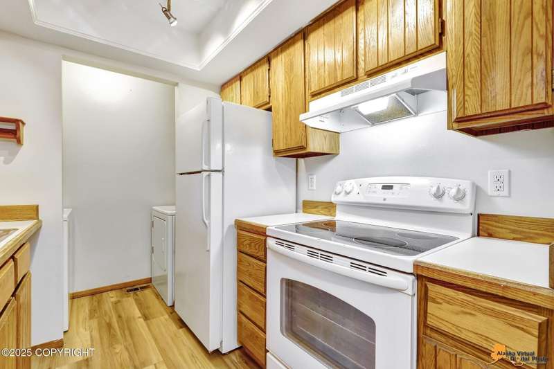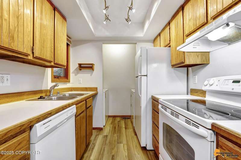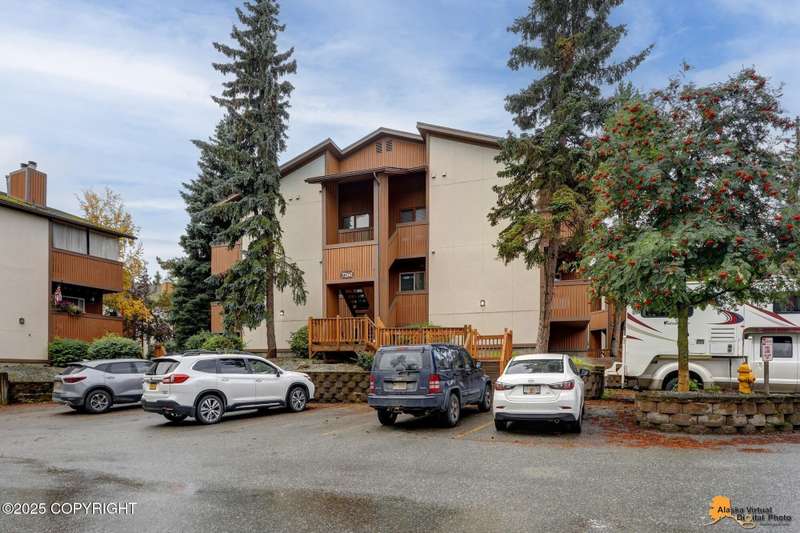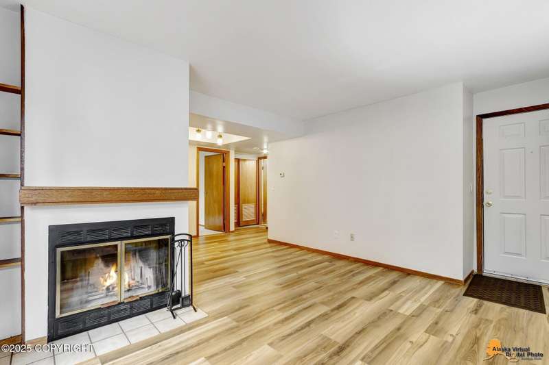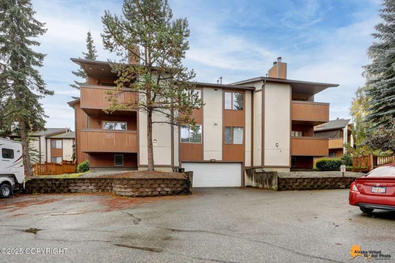This project is close to Taku Lake and Campbell Creek Trail system, Recently refreshed interior with new paint throughout, new LVP floors in living room, dining area and kitchen, and new carpet in the two bedrooms, Wood burning fireplace, primary bedroom has private 3/4 bath and walk thru closet. SE Views overlooking the greenbelt space. Private balcony. Heated garage space underneath the building, storage room in garage area. All appliances stay. Light and Bright. NEWER furnace, Basic Home warranty provided to buyer. Ready for new owners.