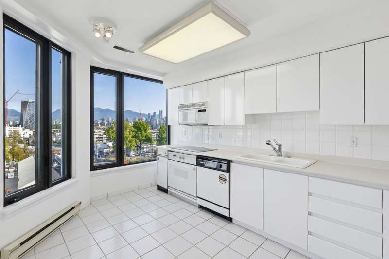 GREAT OPPORTUNITY PRICED BELOW ASSESSED VALUE - Spacious and well-maintained 1,631 SF 3-bedroom + solarium corner home with sweeping unobstructed views of the North Shore mountains, English Bay, and Downtown Vancouver skyline. Nestled in the walkable Fairview neighbourhood at the foot of the Arbutus Greenway, this residence offers expansive bedrooms and living spaces rarely found in the city-ideal for young families or downsizers seeking livability. Within walking distance to future SkyTrain along Broadway. The proactive strata has completed major upgrades including windows, rainscreen, and high-efficiency elevators. Enjoy resort-style amenities: pool, hot tub, sauna, and weight room. Comes with 2 side-by-side parking stalls and 1 storage locker.