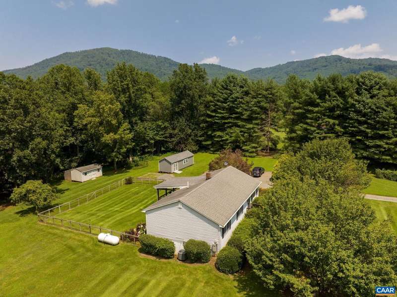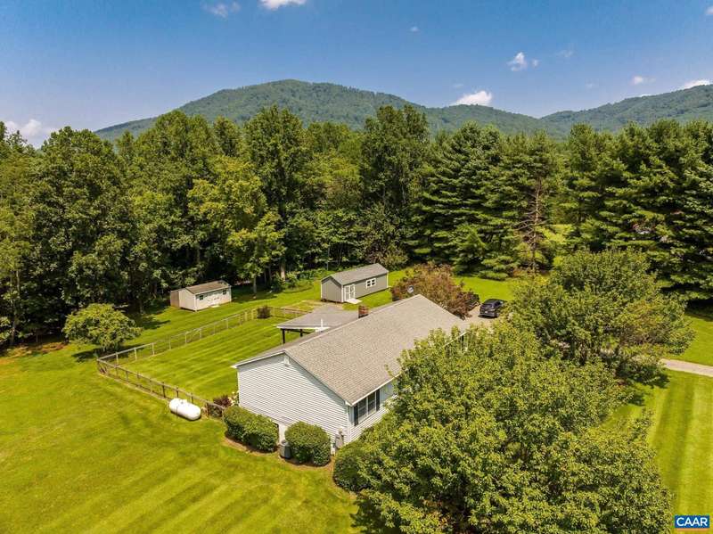 Nestled on over 5 peaceful acres, this inviting one-level home offers the perfect blend of comfort and privacy. Inside, you’ll find beautiful hardwood floors that add warmth and character throughout the main living spaces. The updated bathroom combines modern touches with timeless style. A full, unfinished basement provides abundant storage space or the opportunity to create additional living areas. Outside, two large outbuildings offer endless possibilities—perfect for a workshop, garage, studio space, small business, or extra storage. Relax on the covered rear porch and enjoy the serene surroundings. Whether you’re seeking a full-time residence, weekend getaway, or a property with space for your passions, this home delivers.