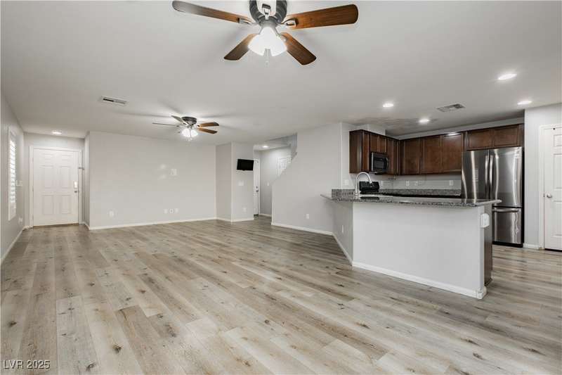 This 3-bedroom, 2.5-bathroom home is move-in ready and designed for easy, modern living. The spacious kitchen features stainless steel appliances, perfect for everyday meals and entertaining. Luxury vinyl flooring runs throughout the main floor, offering durability and style. Upstairs, a versatile loft provides extra space for a home office or lounge area. The finished backyard is fully fenced, offering a low-maintenance outdoor space. With practical features like ample storage, a convenient half-bath for guests, this home is a perfect fit for those seeking comfort and function. Recent updates include a new mineral tank installed in April 2025 for the water softener and an upgraded “flexible R8” HVAC duct system completed in June 2025. The tankless water heater, HVAC, and furnace have been routinely maintained and serviced. Added bonuses include heavy-duty security metal gates, a CCTV Reolink system, and a front and back sprinkler system for easy outdoor care.