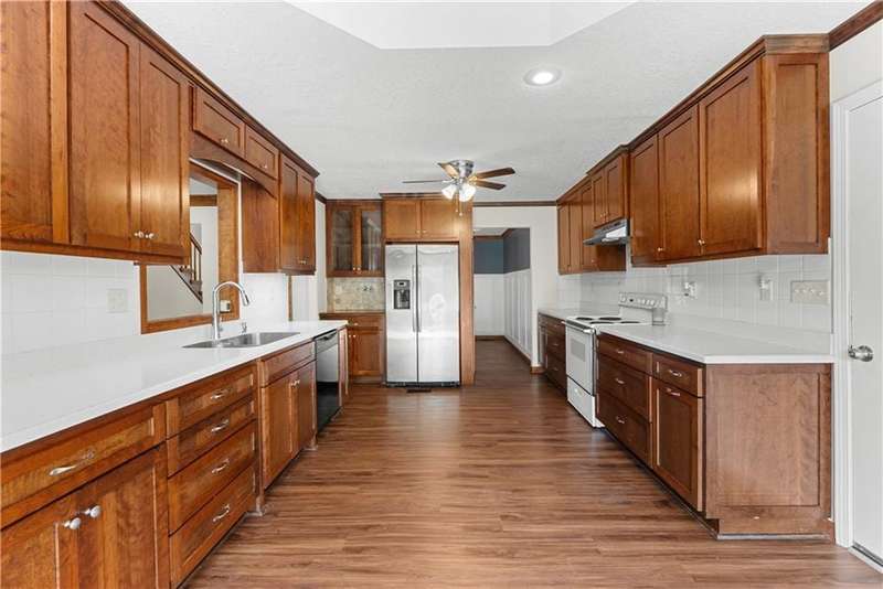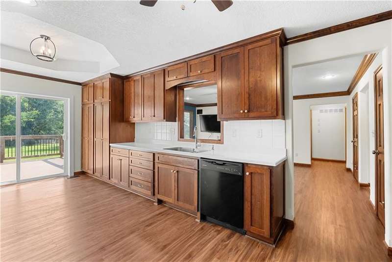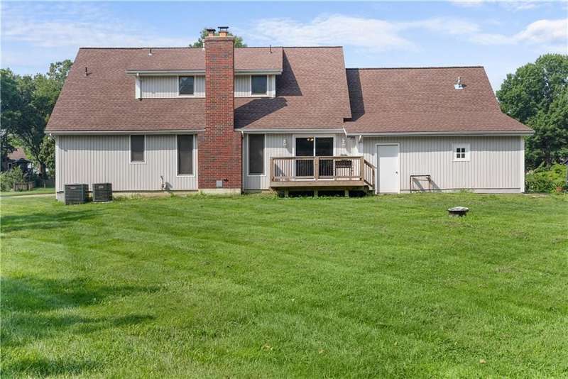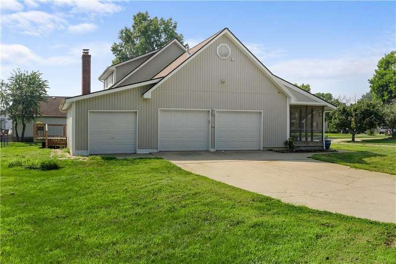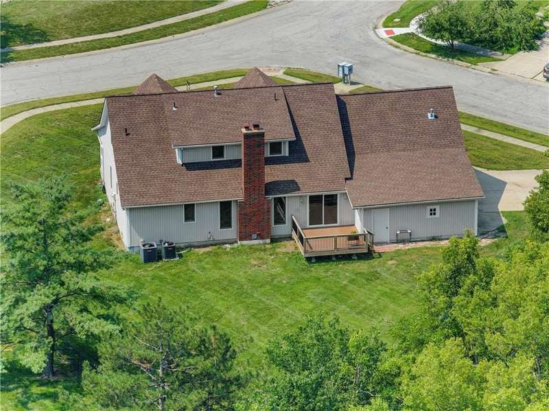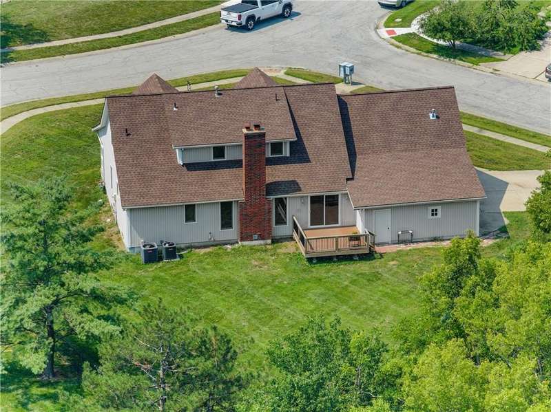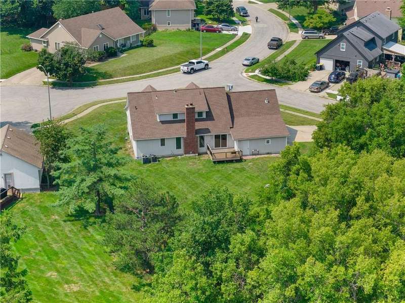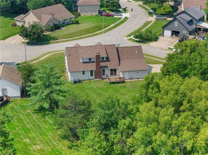 Dreamy Front Porch, Private Setting, & Steps from the Rock Island Trail!Welcome to this peaceful retreat tucked away at the end of a quiet dead-end street in Kansas Cityoffering Raytown schools, over 2,000 sq. ft. of living space, and all the charm youve been looking for. From the moment you step onto the dreamy front porchpartially screened and perfect for rocking chairsyoull feel the tranquility that sets this home apart.This 4-bedroom, 2.5-bath beauty sits on a private lot with no through traffic, giving you a sense of seclusion while still being minutes from city conveniences. Enjoy the outdoors from your newer back deck overlooking wooded views, or take a short stroll to the nearby Rock Island Trail for walking, biking, and breathtaking vistas over rolling hills.Inside, the spacious kitchen is filled with cabinetry, unique nooks, and flows into a dedicated dining area and cozy living room featuring a warm fireplace. The main-level master suite is generously sized, with a large walk-in closet and convenient access to the laundry room. Upstairs, youll find three more roomy bedrooms with oversized closets, perfect for family, guests, or a home office setup.Dont miss the full, unfinished basementa blank canvas ready for your creativity, whether you envision a home gym, workshop, or additional living space. And with a rare three-car garage, theres room for all your vehicles and hobbies. Updates in early 2025 include new sliding back door, new kitchen countertops, new primary bathroom with dual shower head and expanded primary closet.This serene home is truly a hidden gem, blending privacy, nature, and practicalityand its ready for its next chapter. Come see it in person and fall in love!