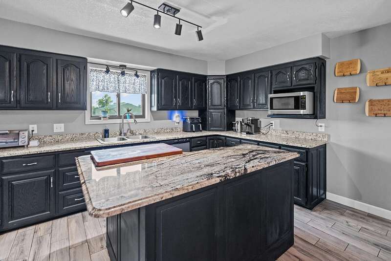This all-brick 4 bedroom, 2.5 bath home offers the perfect blend of comfort and country charm on 4+/- acres with sweeping views that provide the peace and privacy you've been looking for. The main level features a beautifully updated kitchen with granite countertops, stainless steel appliances, and plenty of space for cooking and gathering. The large primary suite includes a walk-in closet, walk-in shower, and jetted tub. Downstairs, the remodeled basement provides additional living space with a nonconforming bedroom, half bath, spacious flex/living room, huge laundry room, and abundant storage. A double car garage adds convenience, while outside you'll find a 45x40 basketball court and a 40x60 insulated shop with a 20x40 loft, wired with 220 power--ideal for hobbies, projects, or extra storage. This property truly has it all, combining modern updates with the tranquility of country living.