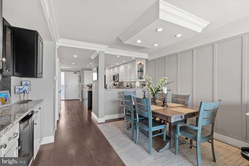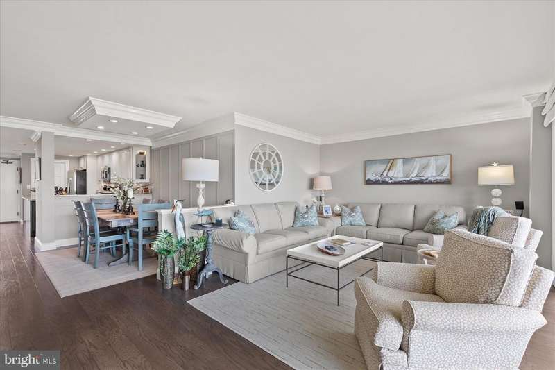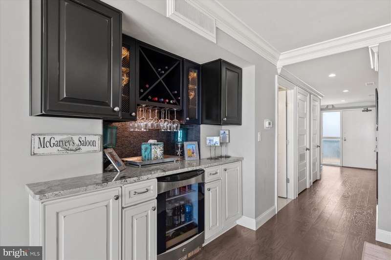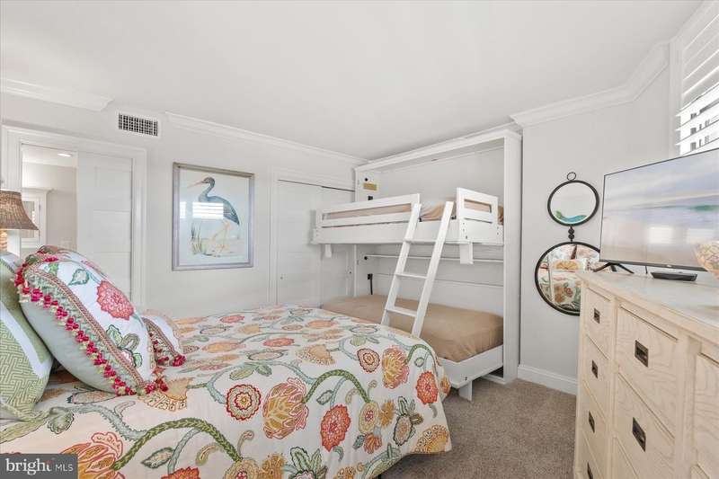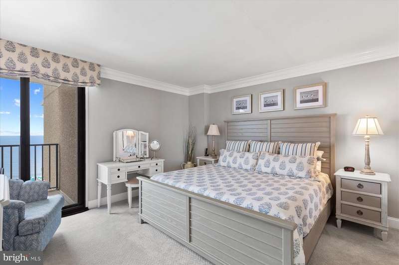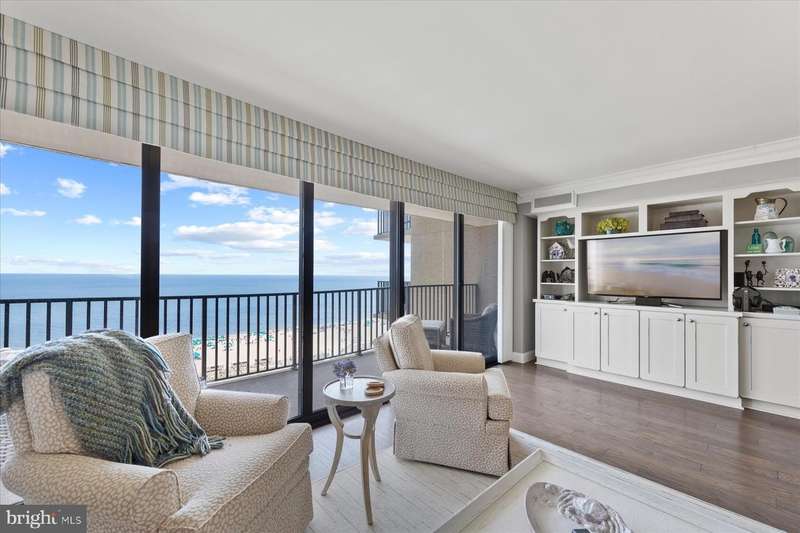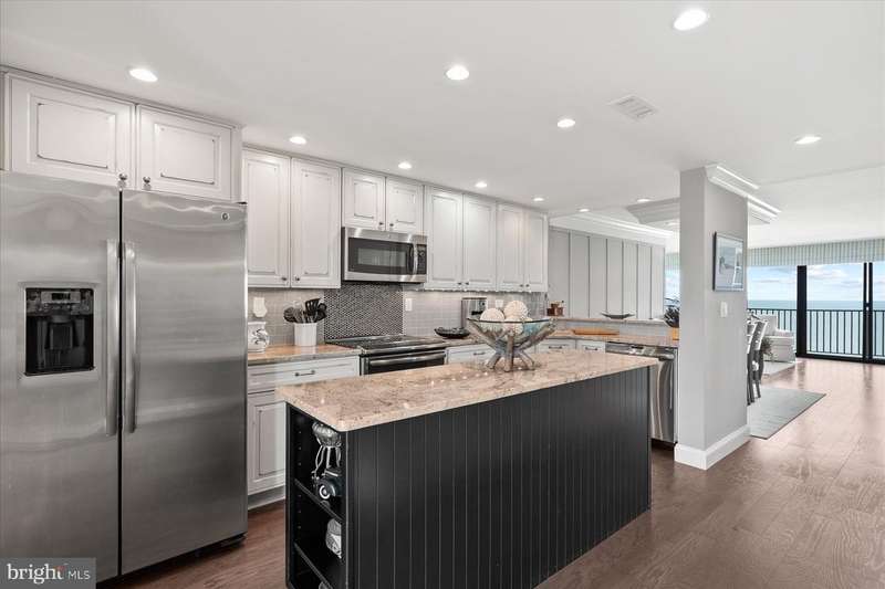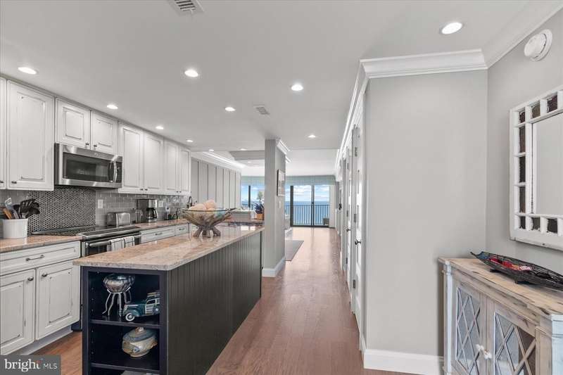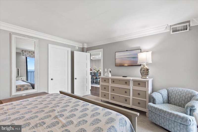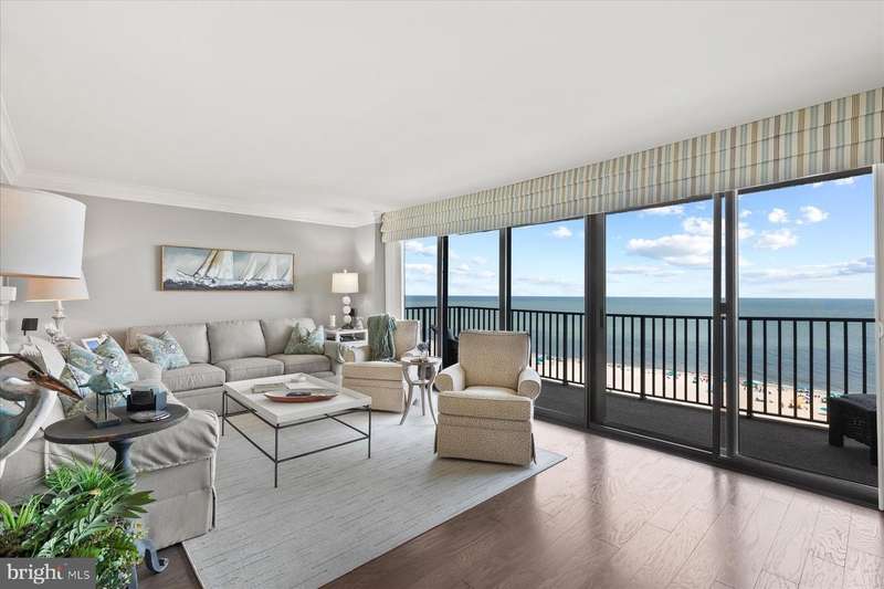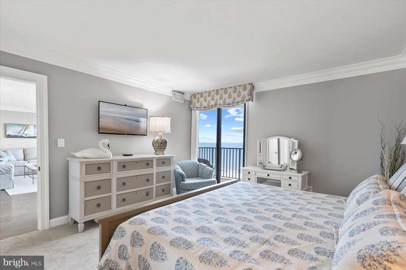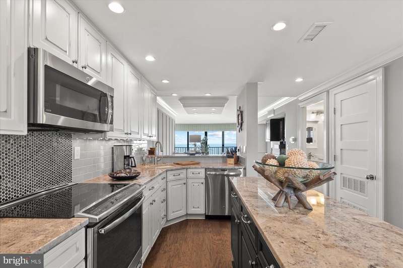 Just stunning! This custom-built ocean front 2 bedroom, 2 bath designer influenced condominium will wow you upon entry. 1103 S. Edgewater presents expansive ocean views with chic, contemporary styling. The Edgewater House is in the heart of Sea Colony East and just steps to the Atlantic Ocean. Boasting solid plank hardwood in all living areas, drywall mud ceilings, 2 tier crown molding, 6""Â? baseboards and 1920's style 5 panel doors throughout. The gourmet kitchen will delight you with a raised ceiling, Stainless GE Profile appliances, Merillat, soft white cottage cushion close cabinetry, black center Island, all topped with gorgeous Granite while the under-cabinet lighting illuminates the gray subway tile and metallic backsplash. Instant hot water is also a treat! Only the Edgewater House offers a separate laundry room...here you will find Plantation shutters, a food pantry, full size Bosch front loading washer and dryer with a unique hinged laundry counter, amazing! The sophisticated dining room is enhanced with custom lit drop ceiling, designer floor to ceiling lattice backdrop with crown molding and exquisite, chilled beverage bar cabinet, great for entertaining. The spacious living room has a custom extended half wall for better couch positioning, built-in entertainment center and custom Hunter Douglas blinds. Step onto the oversized ocean front balcony for extended beach sights and sounds as you continue to entertain your guests or simply wind down your day. The large front guest room is perfect for extended family or friends as they will have light blocking Plantation shutters and enjoy a peaceful night sleep in the Queen bed and a unique double twin bunk Murphy bed! Your guests will also have access to the Hall Jack ""N""Â? Jill bathroom with double, quartz topped vanity, inset bathroom cabinets, custom tiled flooring, tub and shower. At the end of the day, adjourn to the Primary, King oceanfront en-suite that offers black-out shades, large walk-in closet, seamless, cushion close floor to ceiling tiled shower, gorgeous tiled flooring, double, quartz topped vanity and double inset mirrored cabinets. This oceanfront beauty has had all the details thought of and only the best, high quality materials, finishes and touches were utilized. Completely renovated in 2013 along with a Trane forced air system and H/W heater. Ocean front does not get better than this! Schedule your private tour today. At the Edgewater House you are just steps to the indoor & outdoor pool, fitness area, and Sand Bar deli. You can easily walk to downtown Bethany or use Sea Colony's tram and beach buses to Sea Colony West and enjoy the state-of-the-art fitness center with indoor lap pool, 2 outdoor lap pools, indoor Championship Tennis Center, plus countless more pools and tennis courts.