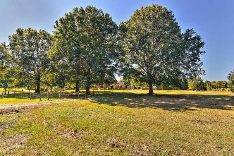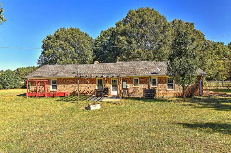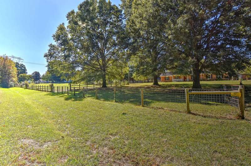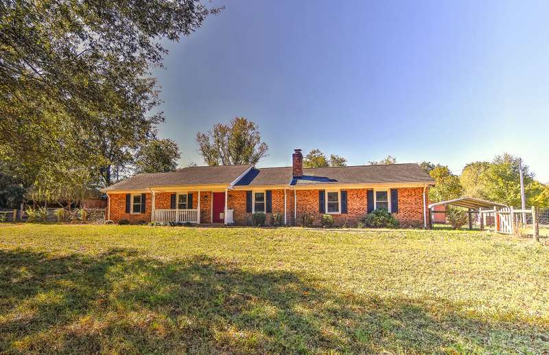 Bring your horses to this 5+ Acre property with 2 acre fenced pasture with 20x24 covered run in area and full brick Ranch home recently updated with vinyl plank flooring, updated baths and large eat-in country kitchen with stainless steel appliances and large living room. Primary bedroom with full bath. Attached septic permit shows 2 bedroom system approved. Floorplan shows 3 bedrooms. Attached, oversize 2 car, sideload garage plus a detached 2 car carport. Multiple storage sheds and 2-3 pens for hens on property. The 5 Acres backs to wooded area and offers lots of possibilities. Other options include additional pastures, riding trails, ATV's, organic gardens or open fields. Close to Monroe, Waxhaw, and Wesley Chapel.