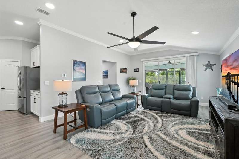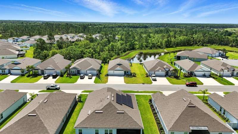 Take advantage of 1 point of the loan amount towards a rate buy down! Welcome to 47 Lumber Jack Trail in Palm Coast, Florida — a beautifully upgraded, move-in-ready smart home built in 2023. This modern residence features 4 spacious bedrooms, 2 bathrooms, a hard-to-find 3-car garage, and 2,115 square feet of thoughtfully designed living space. Perfectly positioned on a peaceful waterfront preserve lot, the home provides rare privacy with no rear neighbors and tranquil views of Florida wildlife right from your covered patio. Step inside to discover a home loaded with upgrades and modern finishes. The open-concept floor plan showcases upgraded flooring, custom lighting, and a gourmet kitchen with sleek cabinetry, quartz countertops, stainless steel appliances, and a large island ideal for hosting family and friends. The owner’s suite is a true retreat, featuring a walk-in closet and a spa-like bathroom with dual vanities and a frameless glass shower. Three additional bedrooms offer flexibility for a home office, guest space, or growing family needs. Designed for today’s lifestyle, this energy-efficient smart home includes integrated technology for lighting, climate control, and security — giving you comfort, convenience, and peace of mind whether you’re home or away. Additional highlights include an inside laundry room, abundant storage, and the rare luxury of a spacious 3-car garage. Located in one of Palm Coast’s most desirable neighborhoods, this home is just minutes from Flagler Beach, scenic walking trails, highly rated schools, and local shopping and dining. Whether you’re looking for a forever home or a Florida retreat, this 2023 upgraded smart home delivers the perfect combination of location, lifestyle, and long-term value.