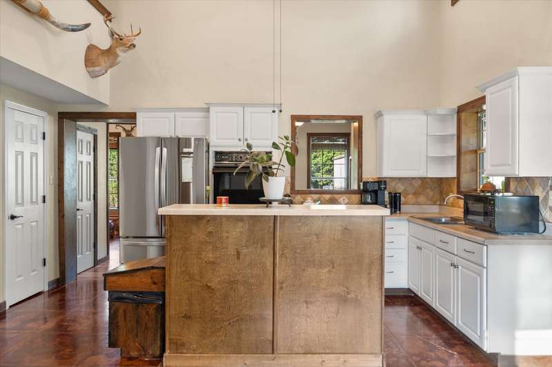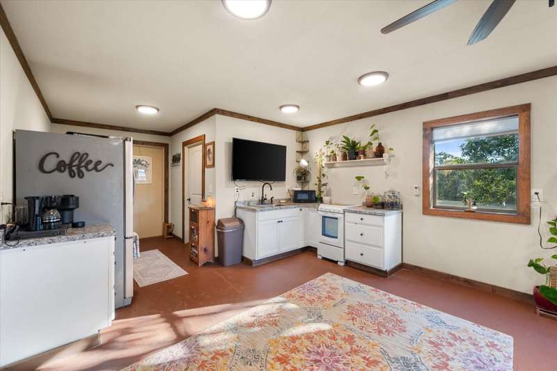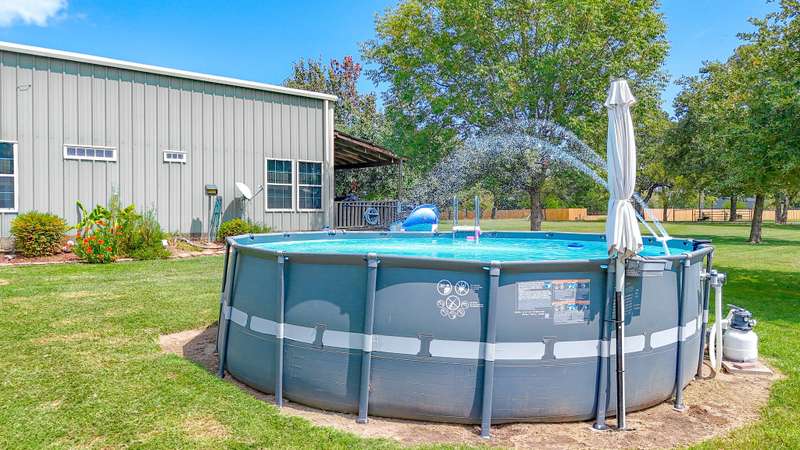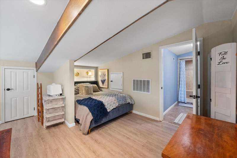 Welcome to this beautifully unique 2-bedroom, 2.5-bath barndomium that offers space, comfort, and versatility just minutes from the lake! Perfectly suited for those who love a blend of rustic charm and modern amenities, this property has it all. Inside, you'll find rich pine floors throughout and a welcoming gas and wood-burning fireplace as the centerpiece of the living room. An elegant winding staircase leads to a loft-style upstairs bedroom and full bath, overlooking the living area ideal for guests, teens, or a private retreat. The primary suite boasts his and hers walk-in closets and a spacious en-suite bath. Each bedroom is generously sized, and all bathrooms are thoughtfully designed for comfort and functionality. Step outside to enjoy the covered front porch, perfect for relaxing year-round. Cool off in the above ground pool and take advantage of the electric gate for added privacy and security. Equestrian or hobby farm ready, the property includes a walking pen approved for FHA, a feed shack, and ample space for animals. RV owners will appreciate the RV hookup, and guests will feel right at home in the detached garage with a fully equipped mother-in-law suite with additional 442 square foot 1 bedroom, and 1 bath with adorable porch overlooking lake which offers both comfort and privacy. Whether you're looking for a full-time residence or a weekend getaway near the lake, this property is a rare find with unmatched character and functionality. It would also be a great Airbnb. Schedule your private showing today and experience all this charming property has to offer!