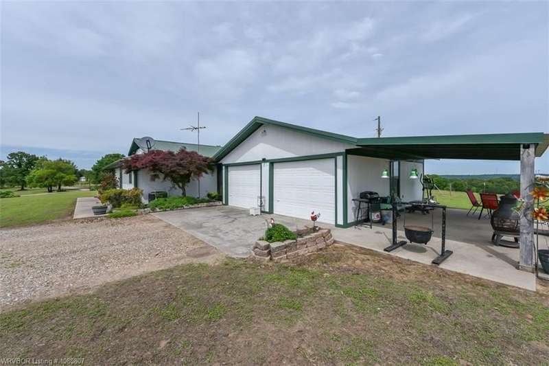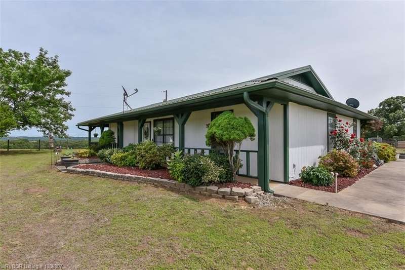 Now being offered to the market with only 10 acres for a more affordable price! Scenic Country Retreat with Year-Round River Valley Views – 10 Acres + Guest House. Experience the peace and privacy of country living with breathtaking year-round views of the River Valley from this one-owner gem just north of Muldrow in the desirable Maple area. Nestled on 10 acres (with the option to purchase an additional 22.5 acres for a total of 32.5 acres), this property offers space, comfort, and versatility in a stunning rural setting—all on a paved road. The home features classic wrap-around porches perfect for enjoying sunrises and sunsets, a cozy propane fireplace, a durable metal roof, and a spacious mudroom for added functionality. A separate guest house offers privacy for visitors or potential rental income, while the shop building provides plenty of space for hobbies, storage, or work. Whether you're looking to start a homestead, enjoy quiet country living, or invest in a scenic property with endless potential, this is a rare find in a prime location.