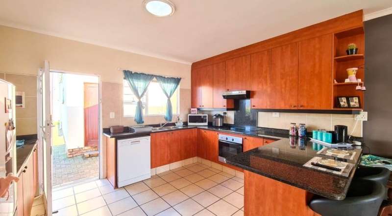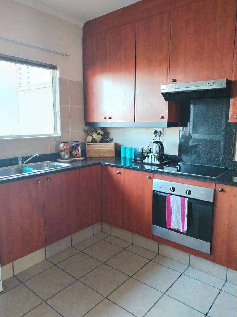 This charming townhouse is an excellent choice for a young couple or a savvy investor seeking rental income. The property offers a main bedroom complete with an en-suite bathroom, built-in cupboards, carpeted floors, and curtain rails, while the second bedroom also features built-in cupboards, carpeted floors, and curtain rails. The bathrooms are thoughtfully designed, with one offering a shower, basin, toilet, tiled floors, and an extractor fan with a heater, while the second includes a bath, shower, basin, toilet, tiled floors, and an extractor fan with a heater. The open-plan kitchen is both stylish and practical, boasting granite countertops, a glass hob, an under-counter oven, an extractor fan, blinds, and space for a dishwasher. Adjacent to the kitchen, the open-plan living room is bright and welcoming, featuring tiled floors and a TV port for entertainment needs. The home also includes an indoor braai area with sliding doors, newly fitted blinds, and access to a spacious, pet-friendly backyard that is perfect for family gatherings or quiet evenings outdoors. Additional features enhance the property?ÇÖs functionality and appeal. A small Wendy house in the backyard provides a delightful space for children, while a larger Wendy house in the front serves as valuable extra storage. The property is equipped with an electric gate operated by remote control, an electric garage with space for a washing machine and tumble dryer, and an alarm system with outdoor beams and an electric fence for added security. The garden includes an exterior washing line, and the home operates on prepaid electricity for added convenience. Move-in ready and designed for modern living, this townhouse is ideal for families who enjoy a secure, comfortable space for quality time and weekend braais. With its combination of practicality and charm, it?ÇÖs an opportunity not to be missed.