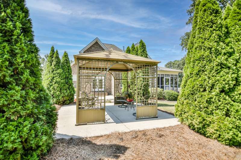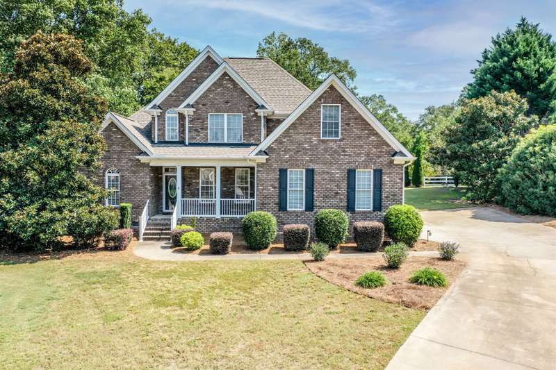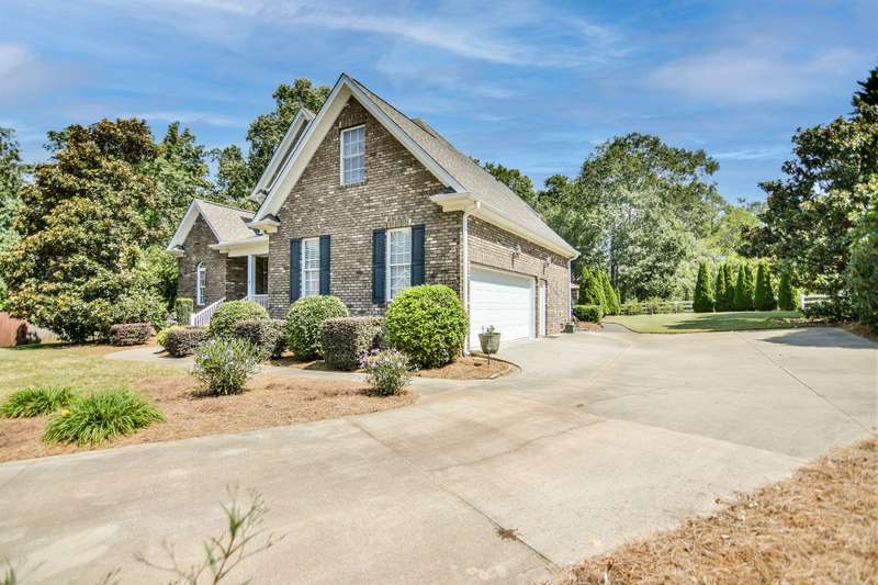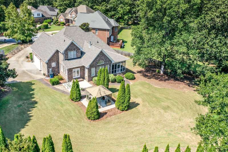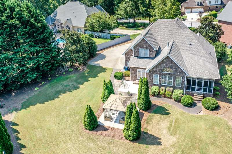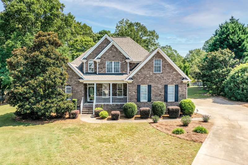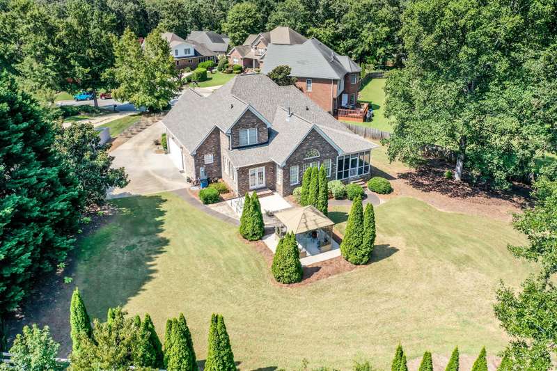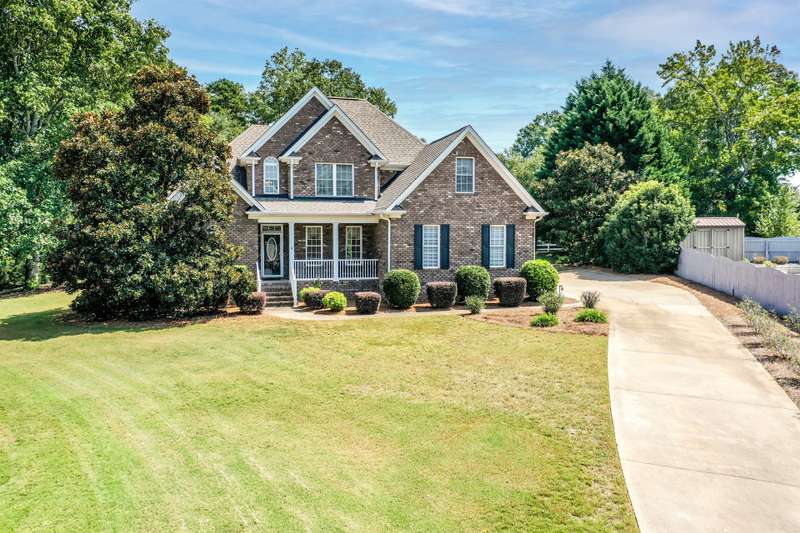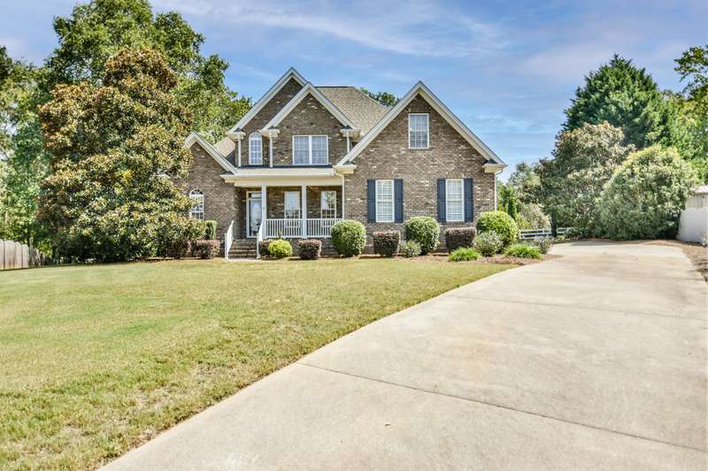 PRIVATE, PEACEFUL, AND PRISTINE LOCATION! This FULL BRICK 4BR/2.5BA with a main-level primary bedroom suite located on an oversized .69 acre private lot in the exclusive community of Woodland Hills in Fountain Inn, SC has it ALL! Nestled into this private cul-de-sac lot just a few minutes straight down from all the Fairview Road shopping in Simpsonville, come in the long driveway to your gorgeous home! With a recently replaced new architectural roof and low maintenance front porch, step into a two story foyer and hardwoods that span most of the main living areas! To the right, a large formal dining room that could also function as an office. The vaulted great room boasts a double-sided gas log fireplace to the tiled and cheery sunroom behind! Entertaining is easy with this open floor plan featuring a spacious kitchen and breakfast area. This kitchen has lovely quartz countertops, maple cabinetry with custom backsplash, SS appliances including a nice frig and double oven range, plus a pantry! The walk-in laundry is situated just off the kitchen and includes the washer, dryer, and laundry sink too! Outdoor living is a dream with this property.... A private screened porch off the sunroom and primary bedroom, a paver patio, a patio with gazebo, surrounded by evergreens and magnolias, a pvc plank fence accenting the back and side yard, a utility shed with electricity, blueberries!, and PLENTY OF SPACE FOR YOUR PERSONAL POOL!!! WOW! The primary bedroom suite on the main level features a trey ceiling, two walk-in closets, and a private bathroom with tile flooring, oversized tile shower, dual sinks, AND two more extra closets! Upstairs discover three more bedrooms with fantastic closets and attic storage plus a hall bath. This one-owner home even includes extras such as a garage yard door on the side load two car garage, 2022 HVAC units, gutter guards with transferable warranty, a termite bond, an upgraded furniture-style half bath vanity, and MORE!! Imagine all of this just 10 minutes from shopping and restaurants with easy access to interstate! DO NOT DELAY!!! This beauty will not be here long! Come home to 4 Rosefield Court today! Ask about free financing buydown!